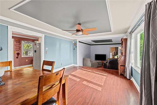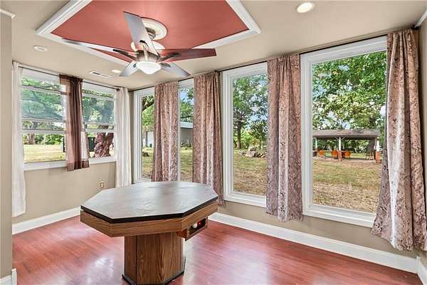 Discover this spacious 4-bedroom, 2-bath home offering a unique blend of comfort and versatility. Two outbuildings with electric, concrete floors, a wood stove, and heat lamps provide the perfect setup for hobbies, workshops, or extra storage. The home also features a recreational room, an enclosed sunroom, and a covered pavilion complete with lights, outlets, and a ceiling fan-ideal for year-round entertaining. Backing to Dyer Park, the property offers privacy and scenic surroundings with plenty of room to enjoy both work and play. House is currently undergoing minor updates.