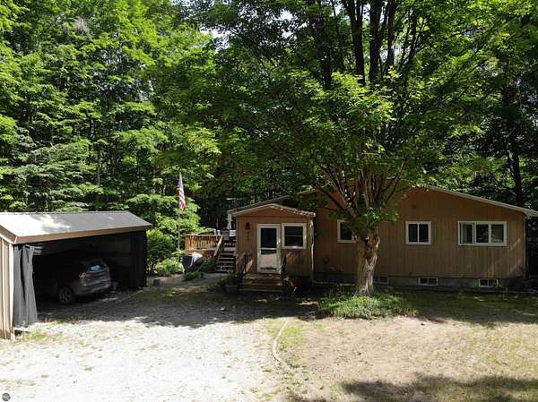 Escape to your private sanctuary in the wilds of Northern Michigan on Oak Hill Road — a quiet, private road that winds through a magnificent hardwood forest just minutes from Fife Lake. This rare custom-built ranch home, owned by the original owners, sits surrounded by towering hardwoods on a peaceful, secluded property where the only sounds are the whisper of the wind through the trees and the call of the wild. Imagine stepping out your door into a true outdoor paradise: World-class fly fishing on the legendary Manistee River in nearby Old Sharon — some of the best in the Midwest. Miles upon miles of trails right out your back door for hiking, horseback riding, dirt biking, SxS adventures, or snowmobiling. Campfires that burn late into the night under a sky bursting with stars and the glowing Milky Way. Hunting, exploring, and four-wheeling through hundreds of acres of pristine Northern Michigan wilderness. Just a few miles north and west (as the eagle flies) to East Lake or Fife Lake for boating, swimming, and all your favorite water sports including fishing or a little further down the road, Fife Lake The custom home itself offers approximately 2,200+ sq ft of comfortable living space with 3 bedrooms and 2 full baths. Highlights include a dramatic two-way fireplace shared between the dining room and living room, a walk-out basement, and a massive oversized pole barn fully equipped with a hoist, air compressor, and everything you need for projects, toys, or winter storage. A seller favorite is sipping morning coffee on the deck while listening to and watching wildlife. Casting a line for trophy trout, or roaring down snow-covered trails on your sled, this property delivers the ultimate Northern Michigan lifestyle — raw, peaceful, and unforgettable. A true rare find for the outdoor enthusiast who wants to live immersed in nature.