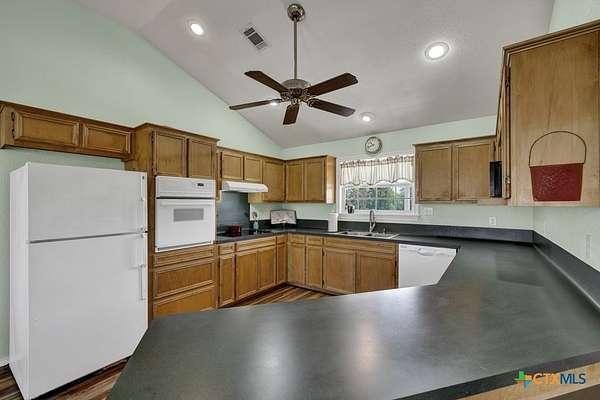 Charming Country Retreat on 4.22 Acres - Minutes from Downtown Wimberley! Discover the perfect blend of country living and modern convenience in this spacious 3-bedroom, 2.5-bath home nestled on 4.22 unrestricted acres just 5 miles from downtown Wimberley. With updated wood laminate flooring and a brand-new HVAC system, this home is move-in ready! Enjoy ample space with a 2-car garage, plus a versatile guest cottage or creative studio for added flexibility. A separate workshop/storage building with multiple carports provides room for projects, equipment, or recreational vehicles. The fully fenced property offers endless possibilities-bring your animals, start a garden, or create your dream outdoor space! Located in the desirable Wimberley ISD and with NO HOA, this property is a rare find. Experience the peace and privacy of country living with quick access to town, shopping, dining, and local attractions. Don't miss this unique opportunity-schedule your showing today!