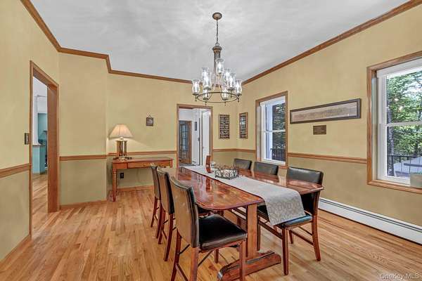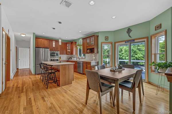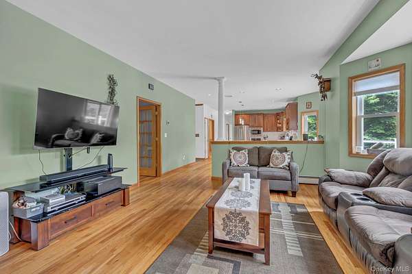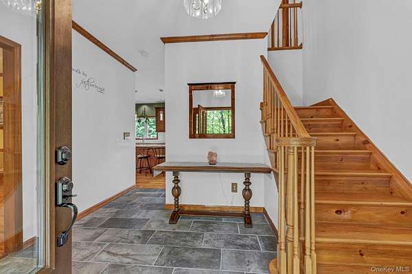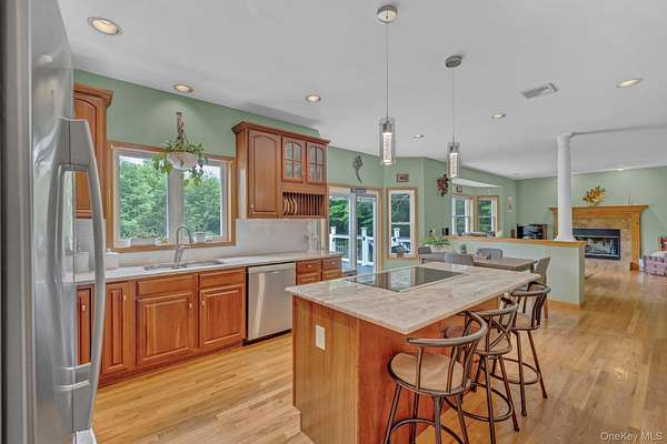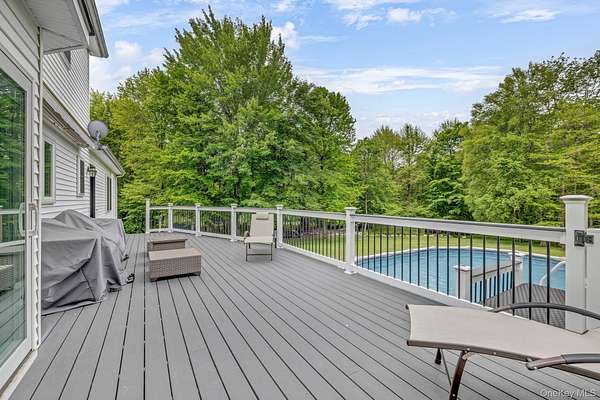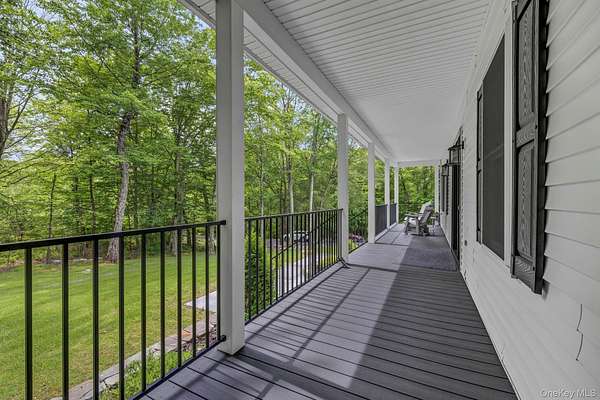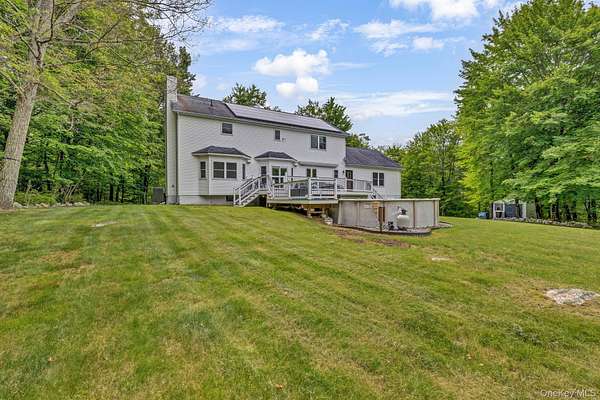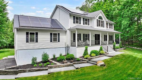 Welcome to this beautiful 4-bedroom Colonial nestled on 5.5 serene acres with seasonal views, offering the perfect blend of privacy, charm, and modern convenience. A long, paved driveway (2022) that offers generous parking and guides you through a professionally landscaped approach, beautifully accented with natural bluestone and ambient dusk-to-dawn sensor lighting. The inviting Trex rocking chair front porch and striking new Pella front door/windows (2019) create a memorable first impression, giving you a glimpse of the comfort and style inside. Step into the inviting foyer with new tile flooring (2025) and continue into the heart of the home- a fully renovated kitchen featuring granite countertops, a center island with bar seating, abundant cabinetry, and a stylish backsplash. Sliding glass doors (2019) open to a spacious Trex deck with solar caps and a retractable awning with dimmable lights(2021) ideal for entertaining or enjoying peaceful outdoor moments as you relax in your above-ground oxygen pool. The open-concept flow between the kitchen and the living room, complete with a classic wood-burning fireplace, makes hosting effortless. A formal dining room with gleaming wood floors offers space for memorable gatherings, while a separate front room is perfect for a home office or guest room. Just down the hall from the kitchen leads to a versatile bonus room equipped with a ductless heating and cooling system (2021), new flooring (2025)--ideal for extended family, a playroom, or a private work-from-home space/business, which connects with the lower level basement area that is partially finished. The upper level boasts a generously sized primary suite with tray ceilings, a spa-like en-suite with a Jacuzzi tub, and a walk-in closet. It also features three generously sized bedrooms with ceiling fans and plush carpeting, as well as a full hall bath. New furnace (2024). Resorts World Catskill Casino, Kartrite Indoor Water Park, Legoland, Sam's Point Hiking, Minnewaska, Mohonk Mountain House, Angry Orchard, Restaurants, Breweries, Wineries and more! Within 1.5 to NYC
