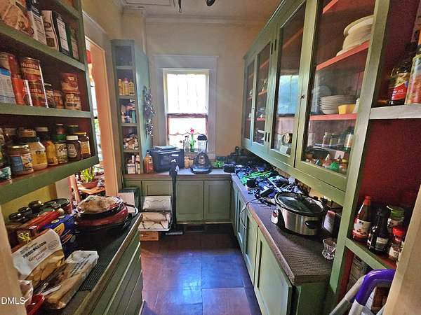 - Bookcases, Built-In Features, Ceiling Fan(s), Dining L, Eat-In Kitchen, Pantry, Shower Only, Smooth Ceilings, Walk-In Shower