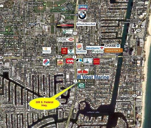 Just 3 Blocks South of Atlantic Blvd on Federal Highway on East Side of the Street.