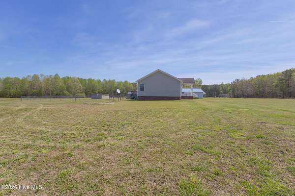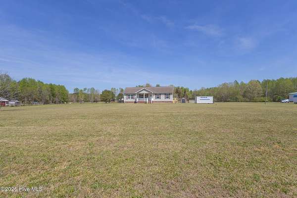 PEACE IS KNOCKING ~ Open the door ! ALMOST FIVE ACRES nestled in Gates County with a lovingly maintained 2009 split plan modular home. Inside you will find a STANDOUT KITCHEN that offers cabinetry and counter space galore! It is anchored by a center island with a great gas cooktop & hood and accented by the double oven, a pantry and that oh-so saught-after window-over-the-sink where you can gaze out over your acreage too! The connected dining area is full of natural light with its sliders that carry you out to a generous back deck. You'll enjoy your al fresca nights on the deck with an oversized butterfly bush bringing gentle visitors, and your fenced in back yard to keep the dogs and kiddos close. The massive laundry area / mud room located on the side of the house also takes you outdoors onto a brand new side porch - perfect for coming in from outdoor activity or delivering groceries when you get home. The primary bedroom has a nice walk in closet, and large windows for natural light. The primary en suite has all you would expect it to with double vanities, linen storage, a soaker tub and stand up shower. You will not be disappointed in the recently updated hall bathroom either! Outdoors offer so much more... starting with 2 sheds; one with a homemade walk in cooler for the hunting enthusiast, a workbench in the other, a chicken coop, a composting area, great open area for grazing (and its zoned A-1 so bring the horses ! ) The property also features a partial wooded area that adds privacy and character and is rumoured to have remnants of an old schoolhouse - whether you are looking for a homestead opportunity or just room to spread out and enjoy nature, this one is for you. Surrounded by opportunity and room to grow. Carpet credit with full price offer - pick it out yourself ! Dont delay!