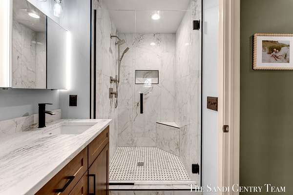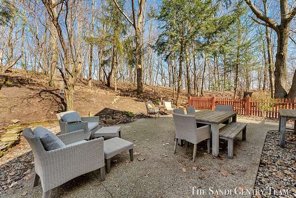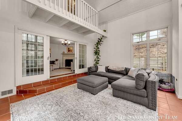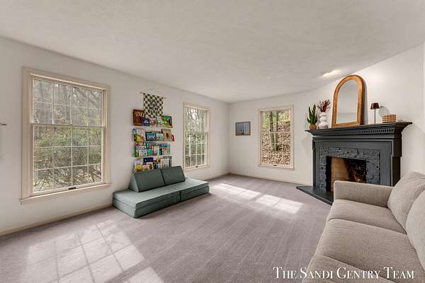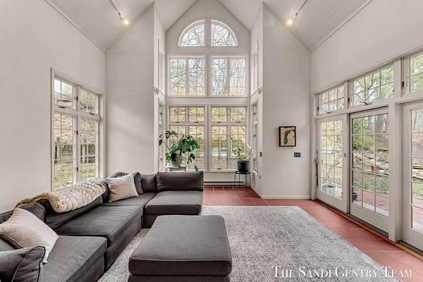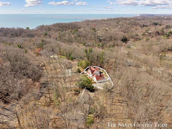 Tucked into a peaceful, wooded setting on 2.7 acres, this inviting Colonial offers a rare blend of privacy and natural beauty, along with access to Lake Michigan through the desirable Stickney Woods. With over 2,600 sq ft, this 3-bed, 2.5-bath home features thoughtfully designed living spaces that balance comfort and functionality. As you step inside, you're welcomed into a bright living room anchored by a striking, darker-toned fireplace that adds warmth and character. Large windows fill the space with natural light, and the layout flows seamlessly into the dining area, creating an ideal setting for both everyday living and entertaining. From there, the home opens into the large, updated kitchen, where generous quartz countertops, rich cabinetry, and a spacious island provide both style and function. The kitchen transitions effortlessly into the family room, offering a comfortable gathering space with a 2nd gas fireplace and an inviting atmosphere. French sliding doors lead you into one of the home's most impressive features, the extended living area. This stunning space is defined by soaring cathedral ceilings and a dramatic wall of windows that flood the room with natural light and showcase the surrounding wooded landscape. It's a true retreat within the home, perfect for relaxing or hosting larger gatherings. Additional sliding doors extend the living space outdoors to a patio area, ideal for enjoying the serene setting. Upstairs, the primary suite offers a peaceful and private retreat, featuring vaulted ceilings, soft natural light, and a spacious layout that feels both open and relaxing. Thoughtful architectural details, including angled ceilings and cozy window nooks, add character while creating inviting spaces to unwind. The en-suite bath has been beautifully updated with a clean, modern look, featuring a warm wood vanity, sleek fixtures, and a stunning tiled walk-in shower with a glass enclosure. The finishes strike a perfect balance between contemporary style and everyday comfort. A unique overlook connects the upper level to the home's main living area below, enhancing the sense of openness while maintaining separation and privacy. 2 additional bedrooms are well-sized and filled with natural light, complemented by an updated bathroom with cohesive, modern finishes. The lower level is your canvas, offering endless potential for additional living space, recreation, or customization to fit your needs. Outside, multiple gathering areas, including a patio with space for seating, a fire pit and a decor pond, create the perfect environment for entertaining or unwinding in nature. The setting is quiet and secluded, yet part of a welcoming community with private Lake Michigan access. This home blends classic Colonial charm with bright, open living spaces and a setting that truly feels like an everyday getaway.