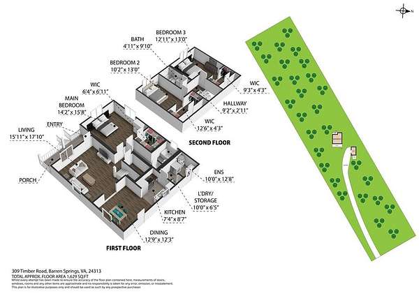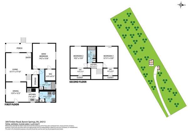 I81 N to Exit 89A, Rt 100 south (Wysor Rd) 6.7 miles to Barren Springs, turn right onto Foster Falls Rd, travel 1 mile to right on Bertha Farms Rd, go 3/10 mile bear right onto Timber Rd and 4/10 mile to 309 on the left. Look for sign