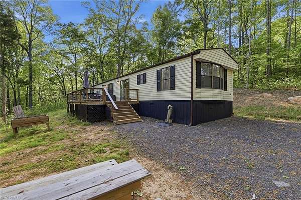 Tucked away in a private country setting, this 8.9 acre property offers the perfect blend of seclusion and natural beauty. Wooded, the land provides a serene, retreat-like atmosphere with plenty of space to explore, relax, fish, and gather with family and friends around a fire pit. You can stay in the 3 bedroom/2 bath single wide or camp under the stars. A peaceful bass stocked pond sits at the rear of the property adding to the tranquil ambiance and offering a scenic spot to relax or enjoy nature. This property includes a maintained 1987 single wide trailer not attached to a permanent foundation with tin skirt and gravity fed septic and hooked to public water.