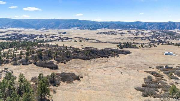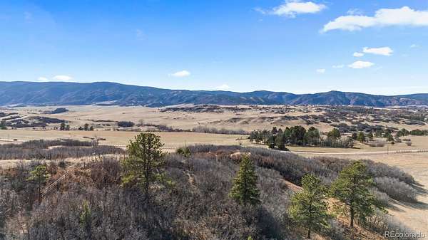 Set across 35 remarkable acres, this exceptional homesite captures sweeping panoramic views that stretch from rugged mountain ranges to rolling valleys, framed by mature pine and oak trees and anchored by the iconic presence of Dawson Butte. Gently undulating terrain and multiple elevated build sites create a rare opportunity to design a custom residence that fully embraces the surrounding landscape, with carefully positioned view corridors ensuring Dawson Butte and the surrounding ridgelines remain a constant backdrop. This property is fully enclosed by an approximately $50,000 perimeter fence, constructed with Corten steel posts set in concrete, an investment that provides long-term durability and property boundary definition. The fencing traces the natural contours of the land, making lot lines easily identifiable while preserving the integrity of the setting. A natural corridor for wildlife enhances the sense of serenity, where elk and deer are frequent visitors. The topography of the land offers versatility for a wide range of architectural designs, from a private hillside retreat to a sprawling ranch estate, allowing for strategic placement of a future home to maximize both privacy and uninterrupted views. With no HOA, the property offers the freedom to create a truly personalized vision without restriction. Perfectly balancing seclusion with accessibility, this location places you just 15 minutes from The Promenade at Castle Rock, offering a curated mix of dining, shopping, and everyday conveniences. On this special piece of land, you can enjoy peaceful surroundings, dramatic sunsets, and ever-changing mountain skies while remaining effortlessly connected to nearby amenities. A rare offering where scale, views, and seclusion converge, this is an extraordinary opportunity to craft a legacy property in a setting that feels worlds away, yet remains effortlessly connected.
