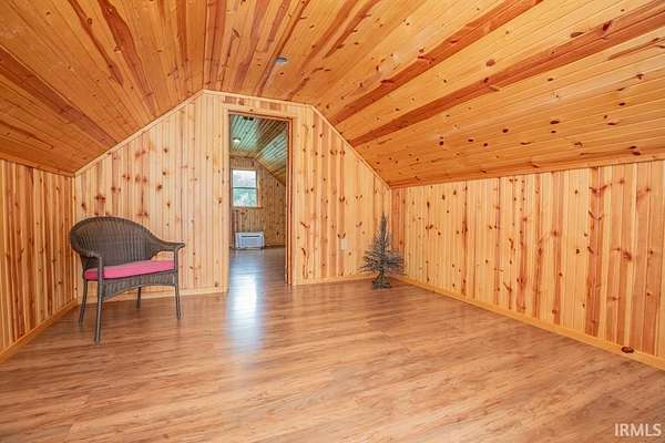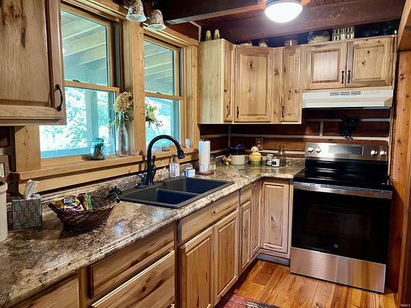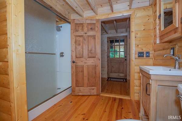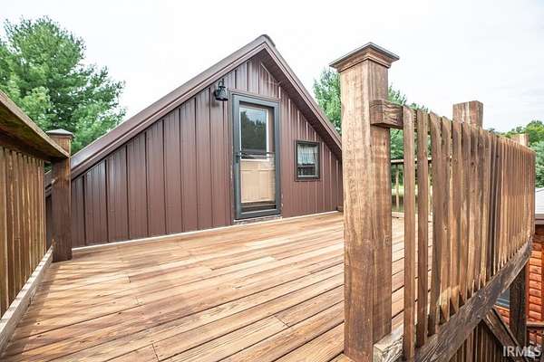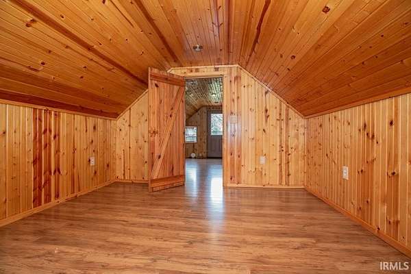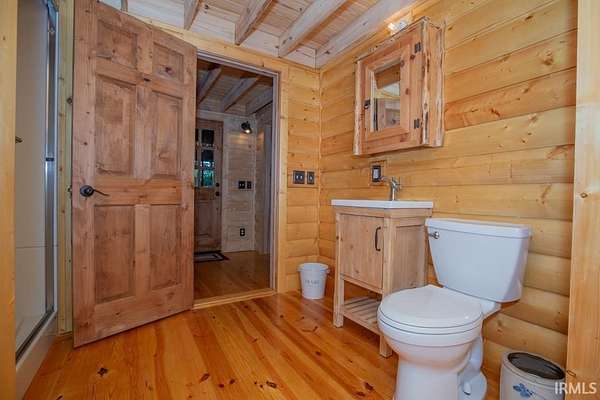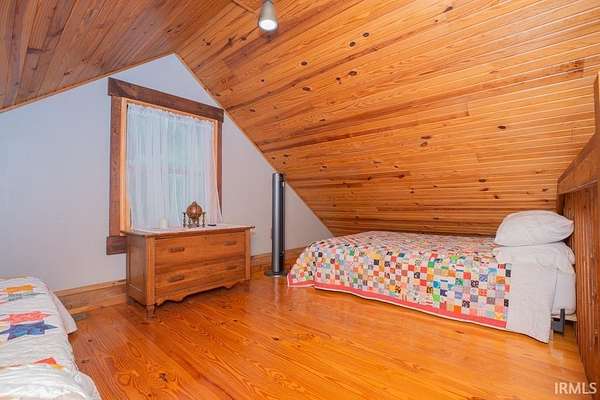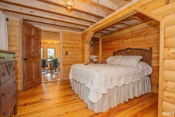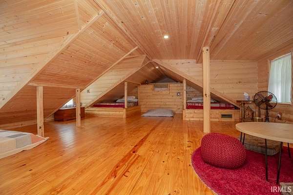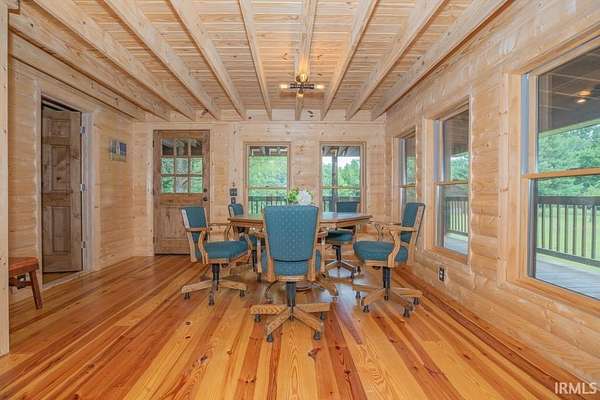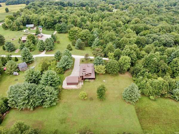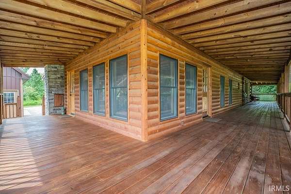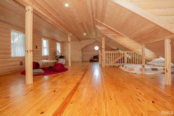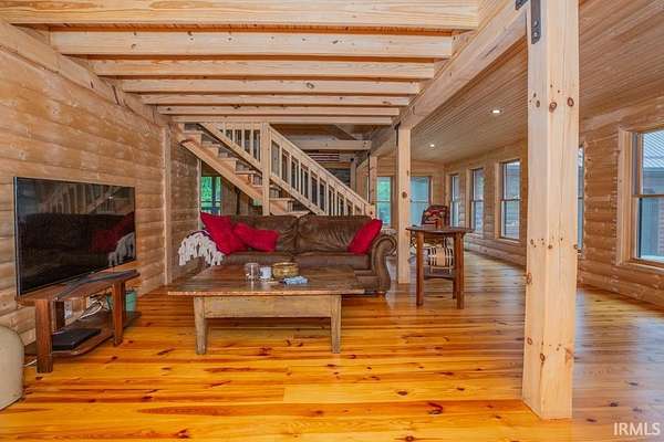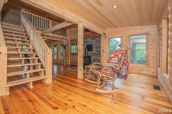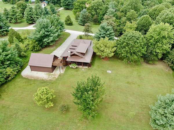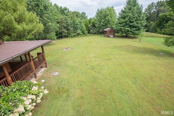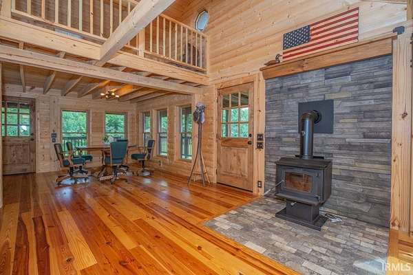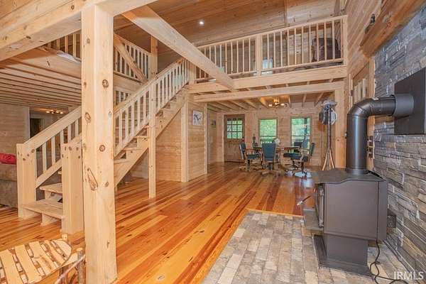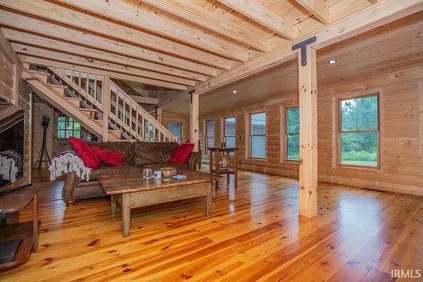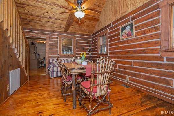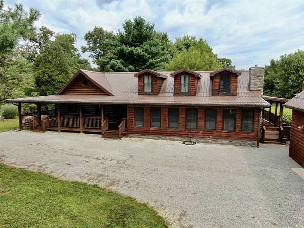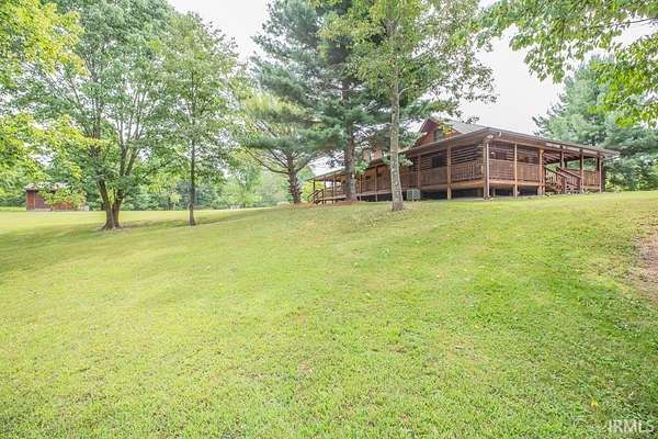 Escape the hustle and bustle and find your tranquil retreat at 3090 Shamrock Lane in Birdseye, Indiana. This charming log cabin, constructed in 2000 and expanded in 2019, offers a perfect blend of rustic allure and modern convenience, all just minutes away from Patoka Lake, local wineries, and breweries. Imagine relaxing on your wrap-around covered porch, surrounded by the sights and sounds of nature--whether it's bird songs or moonlit nights, this space promises peaceful moments. The cabin spans 2367 square feet and is ideal for weekend getaways or full-time country living. Step inside and be greeted by stunning hardwood floors, solid 7" timbers, and an abundance of new Anderson windows framing beautiful views of the surrounding wildlife. The spacious kitchen was completely remodeled, with its ample cabinets and counter space, includes a new refrigerator and range/oven. It opens to a 19 x 10 dining area, perfect for entertaining. On the main floor, you'll find a 14 x 12 bedroom with an en-suite bathroom featuring a walk-in shower. The 30 x 12 family room boasts a wood-burning stove and plenty of natural light, while a 13 x 11 space offers options for a game room or additional sitting area. Upstairs, two loft areas await: a 12 x 16 space ideal for two beds and a 30 x 23 loft with a built-in bed, multiple cove areas for extra beds, and space for recreation or games. The loft also provides a stunning view of the cabin's addition. Outside, a 24 x 30 outbuilding with an eagles roost deck connects to a 15 x 15 remodeled area (not included in square footage of house). This versatile space could serve as a guest area, office, or den. The outbuilding is also perfect for storing vehicles, boats, ATVs, or other recreational gear. Nestled on three lots, this property offers breathtaking views, ample trees, and the ultimate escape from city life. The spacious driveway accommodates extra room for a boat, pontoon and/or extra parking, making this cabin a must-see for anyone seeking a serene retreat. Pictures and descriptions can't fully capture its charm--come see it for yourself! Included in sale: Refrigerator (2025), Range/Oven, Washer/Dryer Combo (2025), Window Treatments, Heat Pump (July 2025)