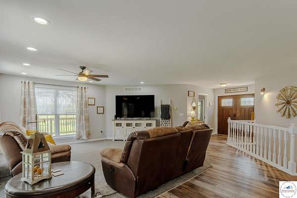 Beautiful country property on 2.5 acres in the desirable Green Ridge School District! This spacious home features 5 bedrooms (2 non-conforming bedrooms downstairs) and 3 full bathrooms. The kitchen, dining and living room offer an open floor plan, perfect for everyday living and entertaining. You will enjoy the back deck off the kitchen area, great for BBQ's or just relaxing on those beautiful evenings. The main level offers three bedrooms, including a spacious master suite with a private bath, and convenient main-floor laundry. The fully finished walk-out basement provides additional living space with a large family room, ideal for guests, a home office, or hobby space. There is also a detached shop with concrete floors and central heat and air, making it a great year-round workspace or storage area. The roof and both water heaters are two years old. Seller just replaced the pressure tank as well! Plenty of space, both inside and out, don’t miss this one!