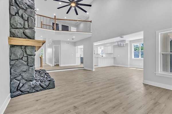 New Price on this Rare Opportunity! Stunning Fully Remodeled 5-Bedroom Estate on 10 Acres with Over 4,200 Sq Ft of Luxurious Living Space! This beautifully designed home offers the perfect blend of luxury, comfort, and space. All set on a serene 10-acre property. Featuring 5 bedrooms, plus a nonconforming bedroom/bonus room. 4 full baths, and 1 half bath, this home is ideal for families, entertaining, and enjoying peaceful estate living. This property has undergone a comprehensive renovation, including extensive interior and exterior upgrades. Please see Scope of Work in documents. The main level boasts a spacious kitchen with a walk-in pantry, island and breakfast/sitting area, open-concept dining area, and a striking living room with a floor-to-ceiling fireplace and cathedral vaulted ceilings. You'll also find a large walk-in laundry room with pocket doors, a convenient half bath, and a luxurious primary suite complete with a fireplace, walk-in closet, spa-like bathroom, and a bonus room perfect for an office, nursery, or private retreat. Upstairs, you'll find three bedrooms and two full bathrooms, offering plenty of space for family or guests. The walk-out lower level is perfect for entertaining or multigenerational living, featuring a full kitchen, cozy fireplace, a bedroom with walk-in closet, and a private bathroom. Enjoy the outdoors from the expansive covered back deck, complete with ceiling fans, the perfect spot to relax and take in the scenic views. A 3-car garage provides ample parking and storage. A second parcel, located adjacent to the west, spans 10.01 acres, ideal for a family to build next door or simply enjoy the additional land. The 10.01 acre parcel is listed under Land MLS #2582200.