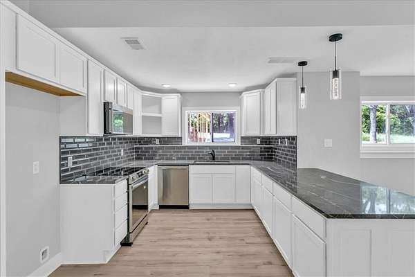 - Built-In Oven, Cooktop, Dishwasher, Disposal, Double Oven, Stainless Steel Appliance(s)