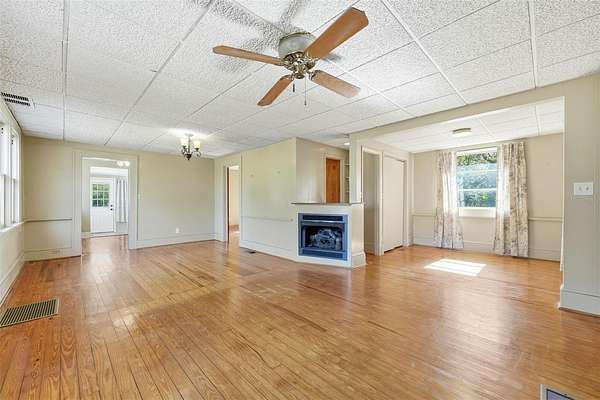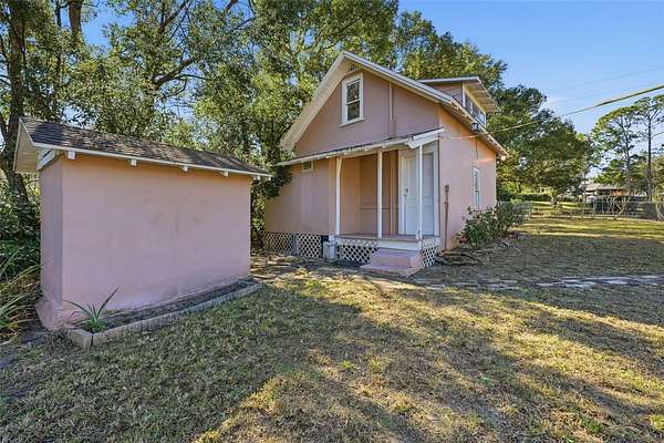 One or more photo(s) has been virtually staged. Celebrating its 100th birthday, this well-maintained home is full of character and sits on 2.36 acres in Sorrento with no HOA. Gorgeous hardwood floors add warmth and timeless appeal to the main living areas, while the 2-bedroom, 2-bath home features a kitchen with granite countertops, a spacious primary suite with a large walk-in closet, an additional room off the primary bedroom ideal for an office or flex space and a gas fireplace in the living room. A rare feature for a home of this era, the property includes a finished 816-square-foot basement with interior access from the kitchen and a private exterior entrance, previously used as a workshop and offering an enclosed room perfect for a man cave, office or hobby space. The property offers exceptional versatility with multiple outbuildings, including a detached two-story building with a one-car garage or workshop below and potential in-law or studio space upstairs, a covered pole barn suitable for boats, vehicles or equipment, and a detached four-car garage with electricity and water, featuring two roll-up style doors (one electric and one manual), ideal for storage, a workshop, or hobby use. Outdoor living is enhanced by an open back patio featuring a unique gas built-in firepit, along with a fenced backyard suitable for dogs, an enclosed fenced storage area, a pump house for the well and convenient access to the 429 and 453 toll roads for easy travel throughout Central Florida.
