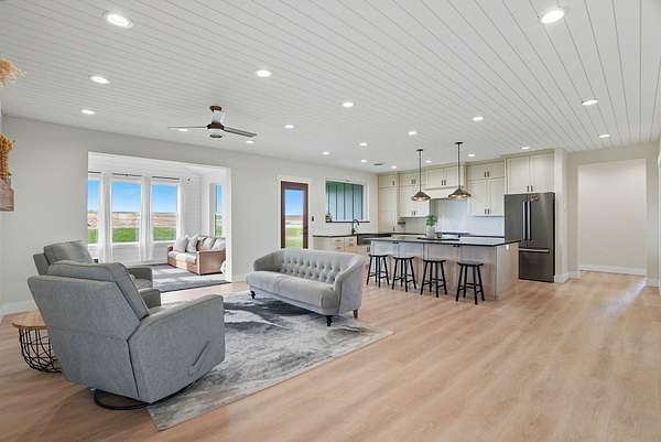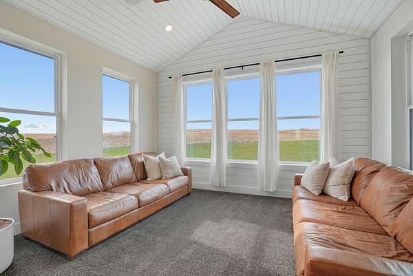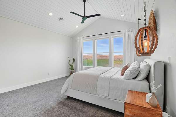 Better than new! Built in 2021 by the owner and meticulously maintained, this gorgeous 3-bedroom, 2-bath custom home is an absolute sanctuary. Sitting on a 3-acre lot that backs up to protected government-leased land, privacy is guaranteed. Positioned perfectly to maximize sunrise and sunset views there will be no lack of light for your morning coffee or evening tea. As you walk in you notice a light filled spacious open concept layout. The show stopping sunroom will have you grabbing a book to read for hours. The spacious well designed kitchen has high-end appliances, slow close cabinets, and thoughtful upgrades throughout. The primary bedroom is a dream with large windows, vaulted ceilings, and walk in closet. The spacious ensuite bathroom is fit for two with dual sinks and a large roman shower with two rainfall shower heads. Don't miss the large laundry room on your way to the insulated garage complete with it's own heating system. Why wait? Schedule your tour today!