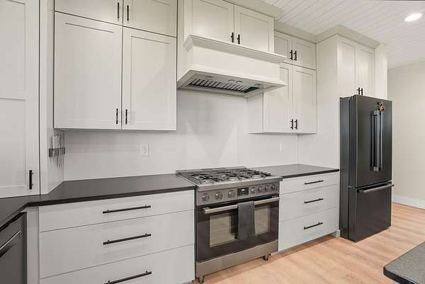 - Dishwasher, Disposal, Dryer, Free-Standing Range, Gas Range, Hard Surface Counters, Refrigerator, Washer