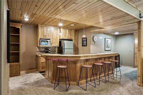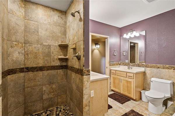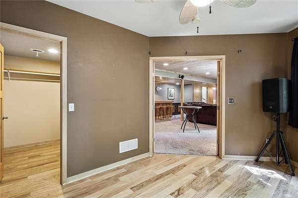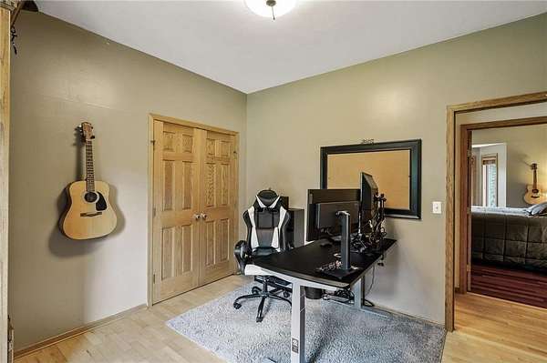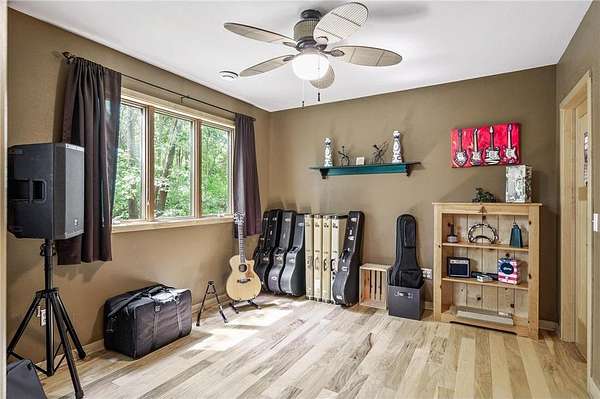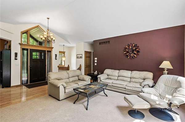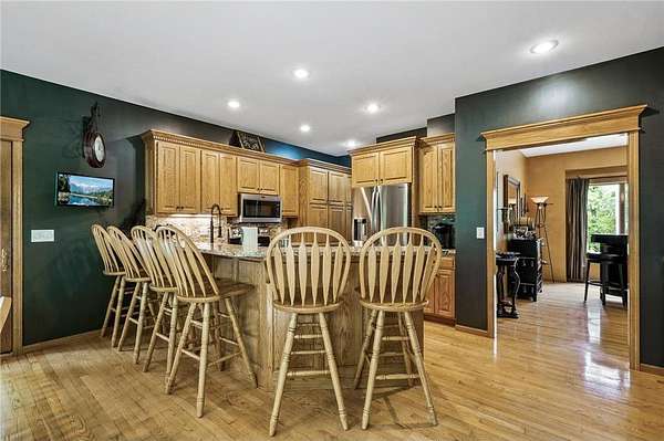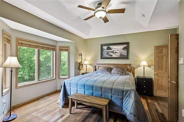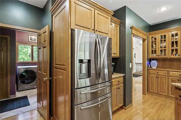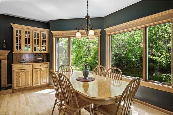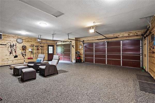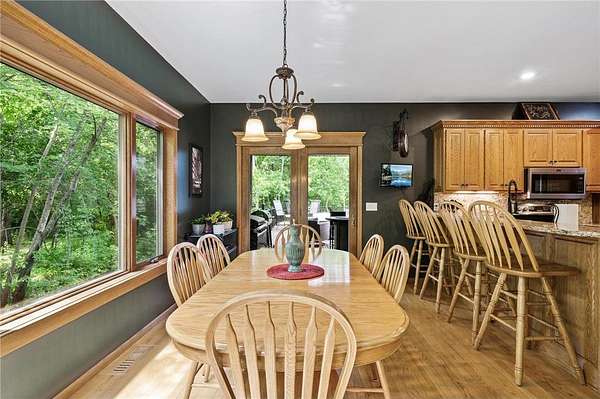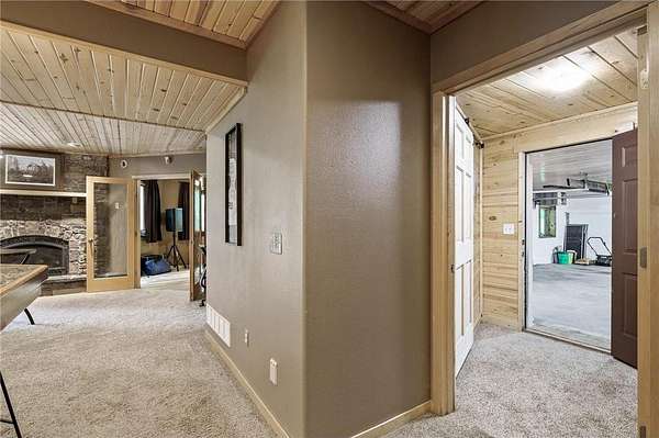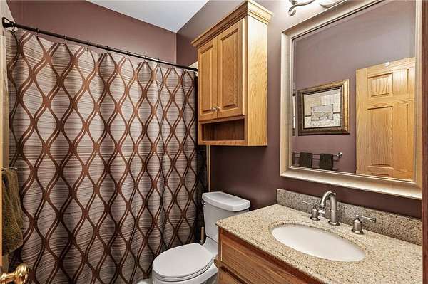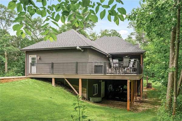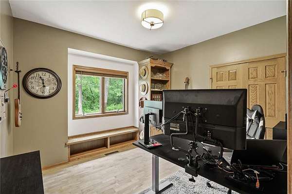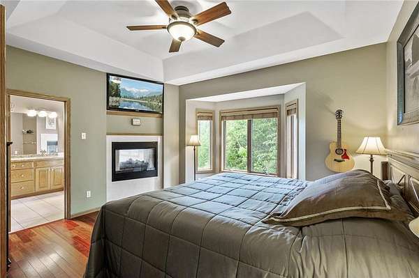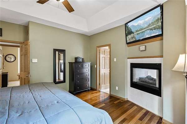 Enjoy all living facilities on one level, including main-floor laundry. The kitchen features stainless steel appliances, granite countertops, and a see-through gas fireplace connecting to the informal dining and living room. Step out from the kitchen onto a brand-new, oversized maintenance-free deck--perfect for entertaining or relaxing in the peaceful wooded setting. The primary suite includes French doors, a walk-in closet, dual vanities, a jacuzzi tub, walk-in shower, and another see-through fireplace between the bedroom and bathroom for added warmth and luxury. The walkout lower level offers a spacious family room with a gas fireplace, a fully equipped wet bar (wine cooler, fridge, microwave, sink, dishwasher), and quick access to the finished, heated tuckunder 2-car garage. Three more bedrooms are located downstairs, including one with french doors, and a large walk-in closet w/built-in-shelving--ideal for a home office. The updated lower-level bath features dual sinks, a jacuzzi tub, and a large walk-in shower. Additional features include: Heated 3-car upper garage with epoxy floors and tongue-and-groove walls | New roof, siding, driveway, and A/C | 75-gallon water heater (2020) | Extensive tree clearing for enhanced space and light | Backyard pond and front perennial garden. This home combines luxury, functionality, and unmatched privacy in a beautiful natural setting. With thoughtful updates, spacious living areas, and a premium location, this is truly a rare find. Schedule your private showing today!