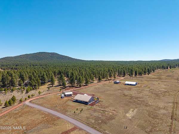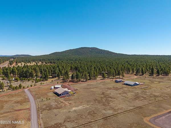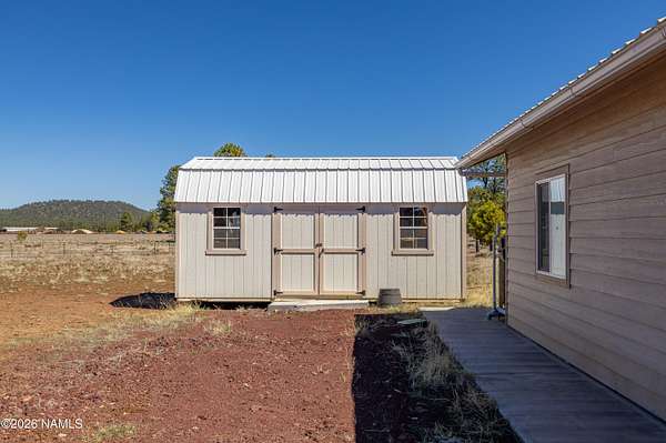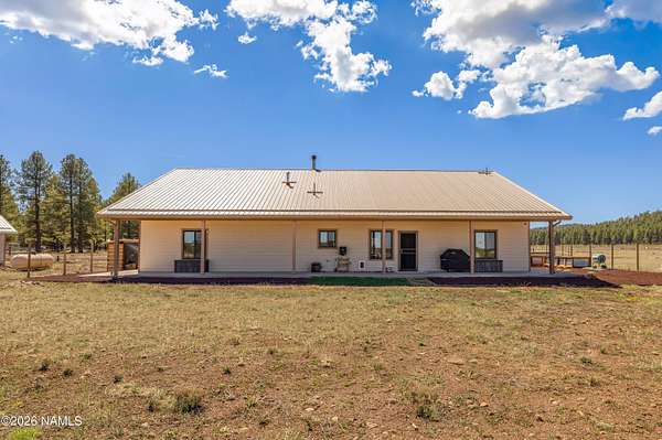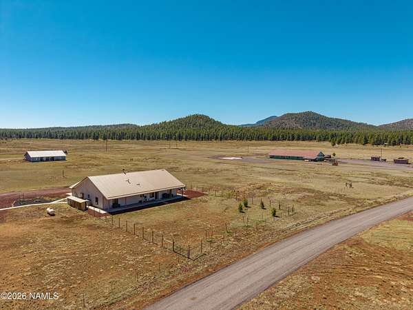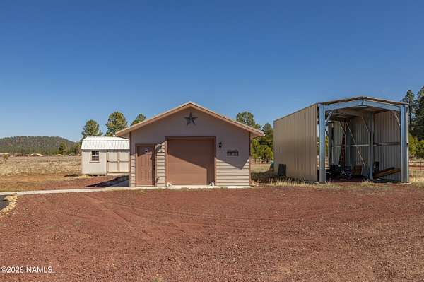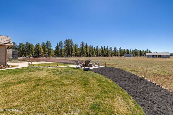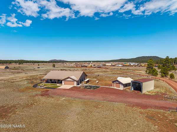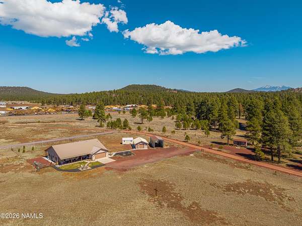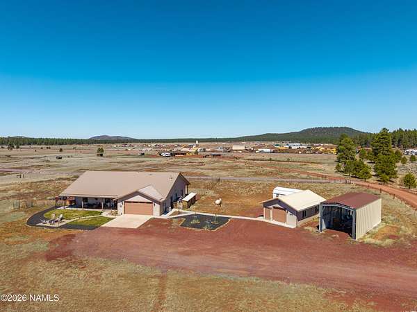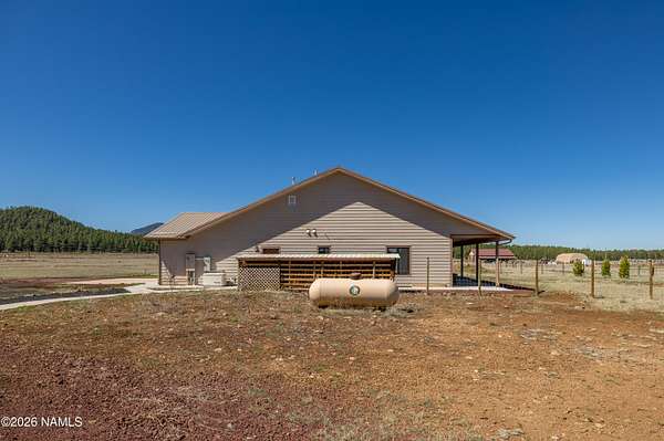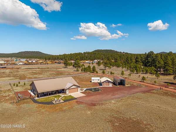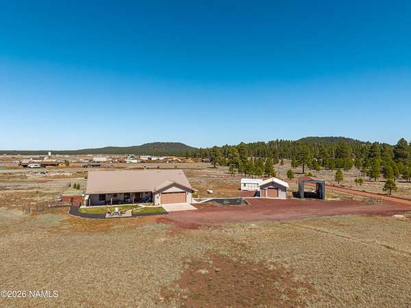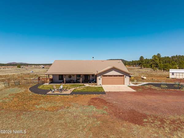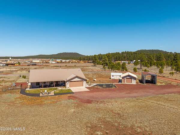 Welcome to your dream home! An exceptional 2022 build set on 5 acres of beautifully curated land, complete with raised garden beds seeded grass, and 13 planted trees including maple, pine, and aspen. This property perfectly blends modern comfort with self-sustaining living. Designed with efficiency and independence in mind, the home features a 1,550-gallon water catchment system feeding into a 6,500-gallon cistern with UV purification- providing a reliable, potable water source without the need for hauling. Inside, you'll find a thoughtfully designed layout with high-end finishes throughout. The kitchen is a true centerpiece, showcasing top-of-the-line appliances, a double oven, quartz countertops, and a custom backsplash- ideal for both everyday living and entertaining. The living room offers warmth and character with a custom travertine fireplace accented by rare marble and a heat distribution blower for maximum efficiency. ADA-compliant doorways and closets add both accessibility and smart design, while the reinforced and expanded garage attic provides exceptional storage. Step outside and enjoy full-length covered front and back patios, a paved fire pit area, and concrete walkways surrounding the home- creating inviting spaces to relax or entertain. The property also includes an expansive insulated workshop with multiple 240-amp circuits, a 10x20 storage unit, and a covered RV port- perfect for all your projects, toys, and storage needs. Built for year-round comfort, the home includes open-cell spray foam insulation, additional electrical circuits for optimal power distribution, and a 10kW propane generator with an automatic transfer switch- ensuring you're never without power. A durable metal roof and motion/light/sound-detecting security cameras complete the package. Additional Opportunity: A fully self-contained ADU is available but does not convey with the property. It may be purchased separately via Bill of Sale. Buyer would be responsible for completing septic, water, and solar installation. Septic plans have already been approved by the City of Williams, offering a head start for those seeking additional living space or income potential. With over 275,000 thousand in upgrades, this property delivers the perfect combination of luxury, functionality, and rural serenity. Come experience it for yourself- This is Northern Arizona living at its finest.