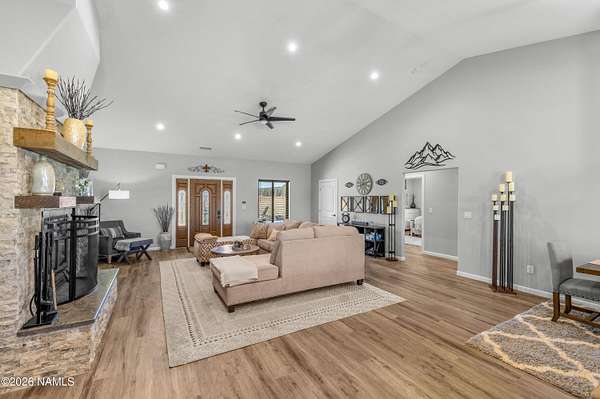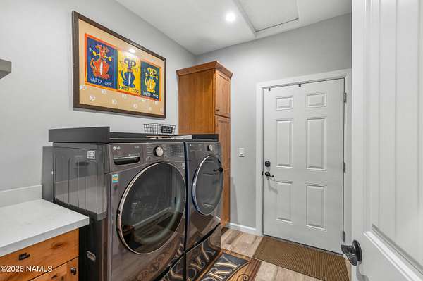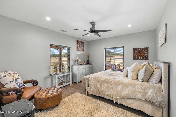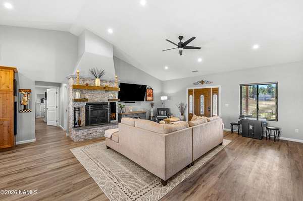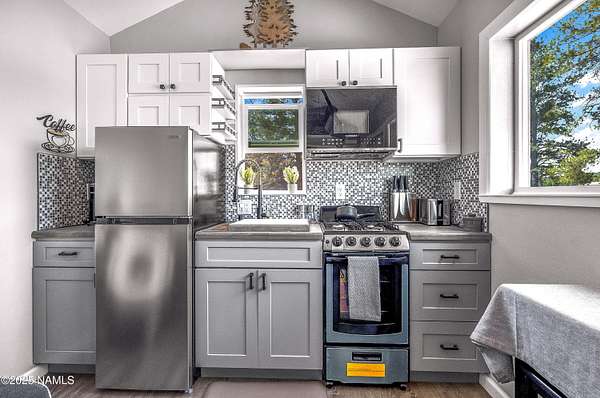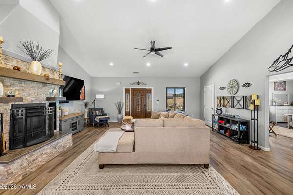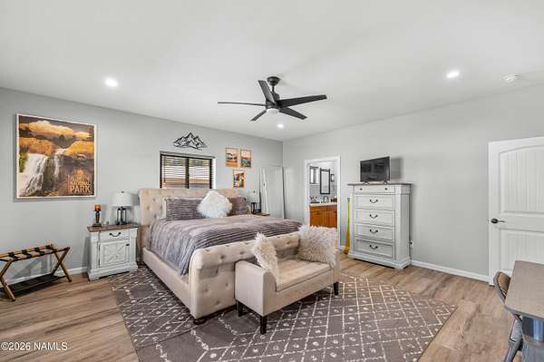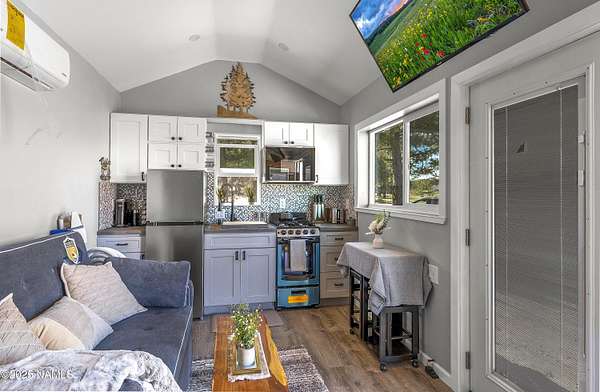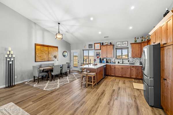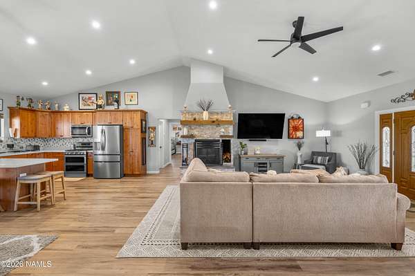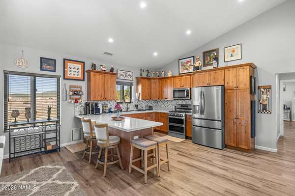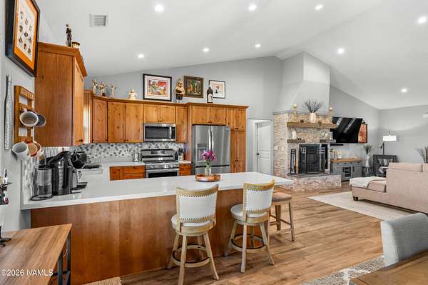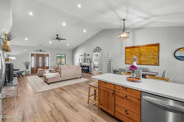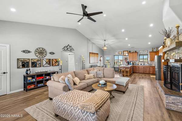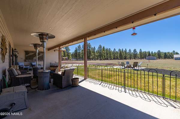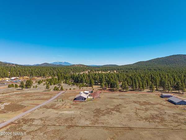 Welcome to your dream home! An exceptional 2022 build set on 5 acres of beautifully curated land, complete with raised garden beds seeded grass, and 13 planted trees including maple, pine, and aspen. This property perfectly blends modern comfort with self-sustaining living. Designed with efficiency and independence in mind, the home features a 1,550-gallon water catchment system feeding into a 6,500-gallon cistern with UV purification- providing a reliable, potable water source without the need for hauling. Inside, you'll find a thoughtfully designed layout with high-end finishes throughout. The kitchen is a true centerpiece, showcasing top-of-the-line appliances, a double oven, quartz countertops, and a custom backsplash- ideal for both everyday living and entertaining. The living room offers warmth and character with a custom travertine fireplace accented by rare marble and a heat distribution blower for maximum efficiency. ADA-compliant doorways and closets add both accessibility and smart design, while the reinforced and expanded garage attic provides exceptional storage. Step outside and enjoy full-length covered front and back patios, a paved fire pit area, and concrete walkways surrounding the home- creating inviting spaces to relax or entertain. The property also includes an expansive insulated workshop with multiple 240-amp circuits, a 10x20 storage unit, and a covered RV port- perfect for all your projects, toys, and storage needs. Built for year-round comfort, the home includes open-cell spray foam insulation, additional electrical circuits for optimal power distribution, and a 10kW propane generator with an automatic transfer switch- ensuring you're never without power. A durable metal roof and motion/light/sound-detecting security cameras complete the package. Additional Opportunity: A fully self-contained ADU is available but does not convey with the property. It may be purchased separately via Bill of Sale. Buyer would be responsible for completing septic, water, and solar installation. Septic plans have already been approved by the City of Williams, offering a head start for those seeking additional living space or income potential. With over 275,000 thousand in upgrades, this property delivers the perfect combination of luxury, functionality, and rural serenity. Come experience it for yourself- This is Northern Arizona living at its finest.