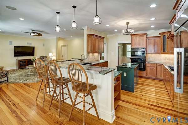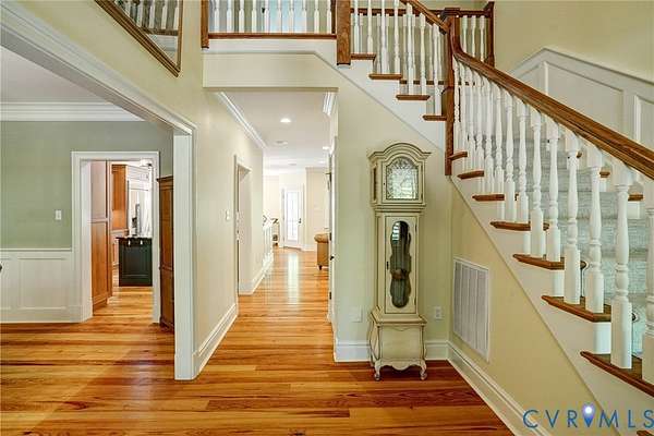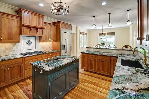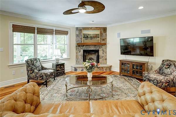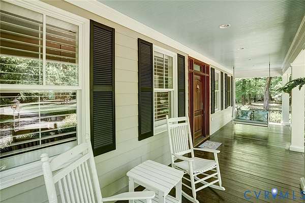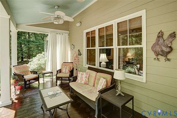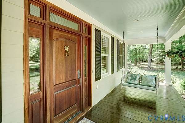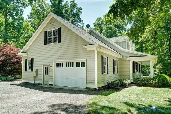 Tucked away on 11.10 acres of serene hardwood forest, this custom-built Cape Cod offers exceptional privacy, timeless design, and refined craftsmanship-without the limitations of HOA restrictions. Situated on a level, picturesque lot, this property blends natural beauty with elegant living. The home's exterior showcases low-maintenance Hardie-Plank siding and a welcoming full front porch, while a striking walnut arched front door sets the tone for the quality found throughout. Inside, the thoughtfully designed open floor plan features 9-foot ceilings, wide-plank cypress flooring across the main level, and beautifully detailed finishes including paneled wainscoting, plantation shutters, and updated lighting and ceiling fans. At the heart of the home, the kitchen and family room flow seamlessly together-ideal for both everyday living and entertaining. The kitchen is a standout with cherry beaded inset cabinetry, a center island, quartzite countertops, built-in stainless steel refrigerator/freezer, GE wall oven, and a five-burner gas cooktop. The adjoining breakfast room offers peaceful garden views, while the spacious family room features a dramatic floor-to-ceiling stone gas fireplace with remote. The main level also includes a generously sized mudroom complete with a walk-in pantry, built-in bar with ice maker, ample storage, and a convenient half bath. The first-floor primary suite provides a luxurious retreat with dual walk-in closets and a spa-like bath featuring double vanities, a tiled shower, clawfoot tub, and private water closet. Upstairs, three additional bedrooms offer comfort and flexibility, including one with a private en suite bath. Outdoor living is equally impressive, with a covered rear porch and a concrete paver patio overlooking a lush lawn framed by blooming redbuds and dogwoods-perfect for relaxing or entertaining in total privacy. Attached 1.5-car garage with a people door and This exceptional property combines classic Cape Cod charm with modern amenities in a truly tranquil setting.
