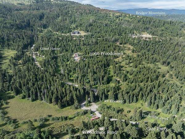From Bozeman, E on I-90 for 14 miles, take Exit 319, Jackson Creek Road, R at stop Sign, R to Woodchuck Rd. Stay on Woodchuck for approx. 4 miles to 3096 Woodchuck gate.