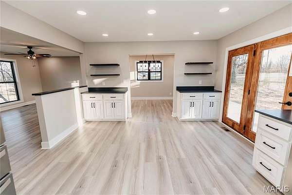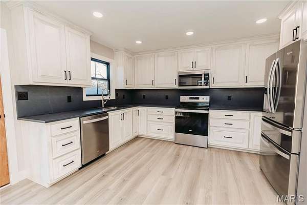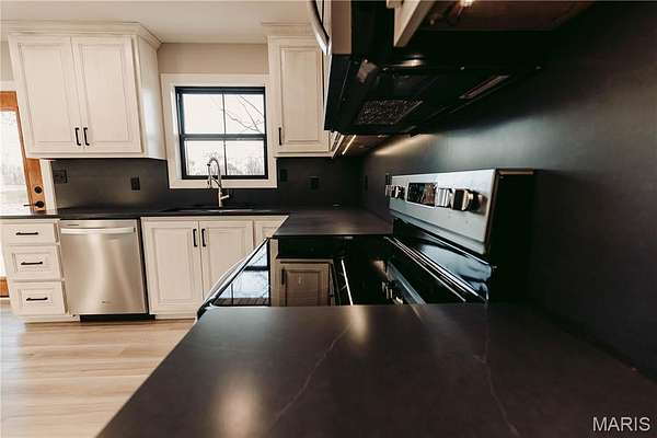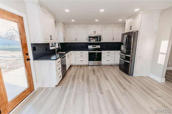 From the moment you arrive, the approach sets the tone for what’s inside — timeless architecture, rich wood columns, and a striking entrance that immediately captures the attention of even the most discerning buyer. This is not your typical remodel. This is a full transformation. Taken completely to the studs, this 5-bedroom, 3 full bath home has been meticulously rebuilt with no detail overlooked — from brand-new electrical, plumbing, insulation, and drywall to the finest high-end finishes throughout. Every system and surface has been thoughtfully upgraded to create a home that feels both luxurious and effortlessly functional. Step inside to a grand front entry featuring custom built-ins on both sides, illuminated planter shelves, and a discreet plug-in station for your internet modem. Custom wood steps with handcrafted railings lead you through a beautifully cohesive space finished with premium LVP flooring throughout. The exterior matches the interior in quality with new roof, windows, doors, siding, and a fenced backyard. The kitchen is truly a showpiece — designed beyond expectation with quartz countertops and a full quartz backsplash, custom cabinetry, under-cabinet lighting, a large under-mount sink, and a complete appliance package. The laundry area offers a spacious folding station and a thoughtfully designed pull-out hamper system. Every bathroom elevates daily living with spa-inspired features including Bluetooth exhaust fans, self-defrosting mirrors (one complete with built-in phone charger), and a custom walk-in tiled shower featuring a rain head and dual handheld shower heads. Outdoor living is equally impressive with a full-length concrete patio, mature trees, and concrete landscaping curbing that adds a polished, finished look. This home was not simply renovated, it was reimagined and executed at a level rarely seen. The upgrades are extensive and far beyond what can be captured here. Drive times make this home an option for many, allowing commutes of 30 minutes to Jefferson City, 25 minutes to Rolla, 45 minutes to Ft. Leonard Wood, less than an hour to the Lake. Be sure to request the feature brochure when touring this exceptional property.