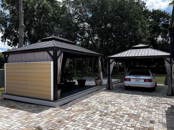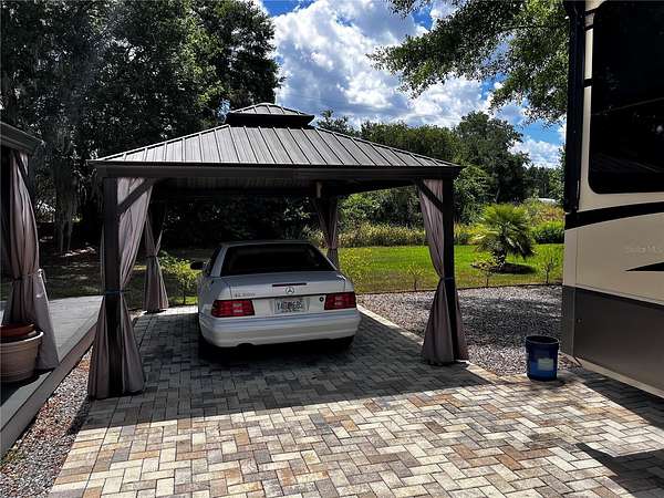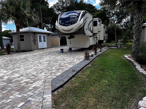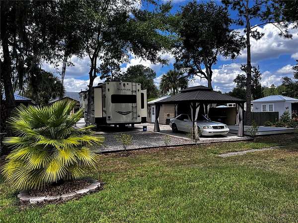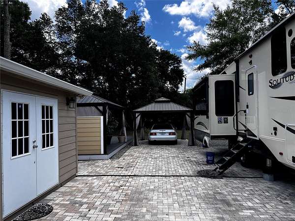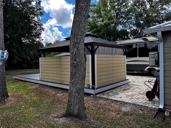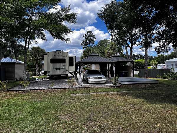 Private and peaceful with no rear neighbors, this incredible RV lot in the 55+ Wilderness RV Resort offers a rare combination of privacy, upgrades, and location. Directly across from the private clubhouse and pool, the lot is beautifully finished with pavers, decorative rock, and lush landscaping. Enjoy two separate 12x16 gazebos--one set on a 12x30 Trex composite deck--perfect for entertaining or unwinding. The covered outdoor area with half walls and electric outlets creates a comfortable space to gather with friends and family. The fully insulated shed is equipped with 60-amp service and a Mitsubishi mini-split system--making it easy to convert into a guest suite. This resort-style community sits along the Ocklawaha River and allows short- or long-term rentals, with no age restriction for ownership (just not full-time living under 55). You'll love the feeling of being immersed in nature, yet only 7 miles from downtown Ocala via Hwy 40. Kayak from Silver Springs and pull out right at the resort! Nearby adventures include off-road Jeep trails and state parks like Rainbow Springs and Salt Springs. The resort offers a heated pool, fitness center, clubhouse, billiards, walking trails, and fishing docks. Families can visit too--grands are allowed two weeks at a time. Whether you're looking for a weekend escape, a winter retreat, or an income-generating rental, this lot delivers the best of Florida outdoor living.