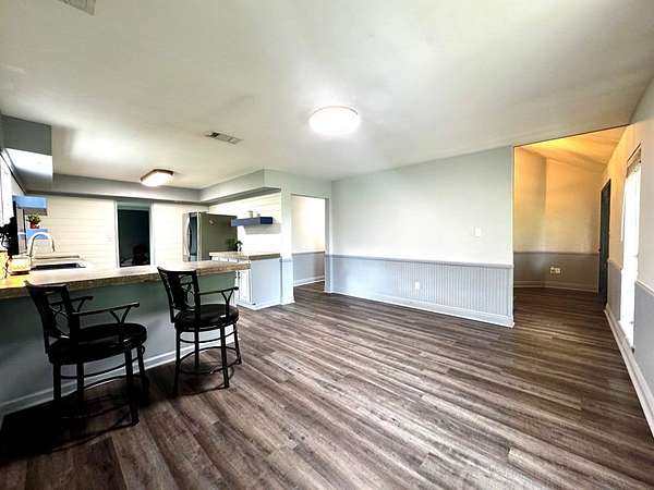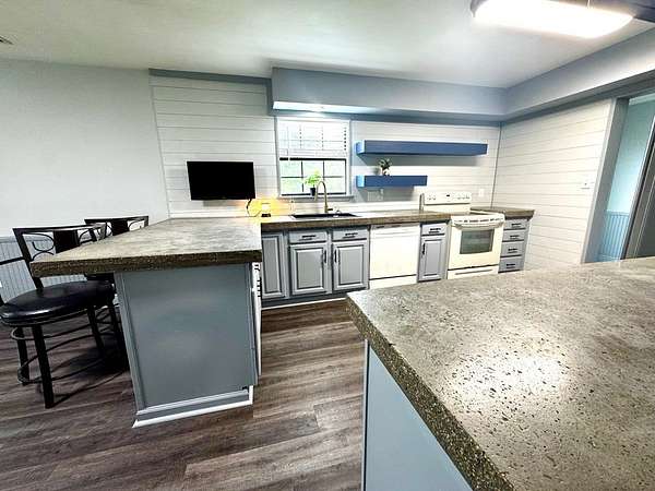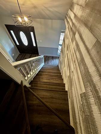 This classic style home has been updated w/a modern twist from the modern painted door w/leaded glass, wood plank style ceramic tile, the sleek finishes, neutral colors to the wainscoting in the home. It invites you in w/welcoming foyer, shiplap adorned staircase, a custom seating bench to & modern lighting. The kitchen offers a custom concrete countertop & an eating bar that?s open to the dining area. The mud room w/floating shelving is nestled between the kitchen & lg utility room w/half bath. The living room offers an extra large space, freshly updated w/sleek finishes, light colors, easy care flooring, & a simplistic style that lets you make it your own. The downstairs boasts a large primary bedroom w/2 closets & ensuite, 2 add'l ample size bedrooms & hall bathroom. The upstairs has 2 very large bedrooms w/nooks that can be used as gaming, studying & play spaces. It also has a full bath, custom desk/work space & a living room. All this on 1.6 AC with a Small Guest House.