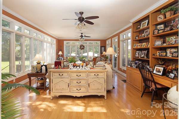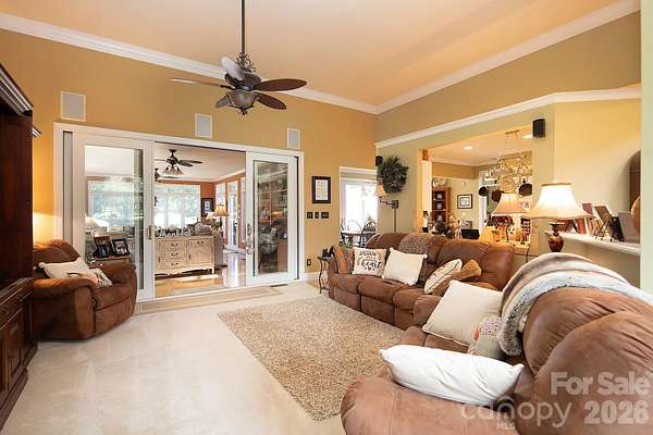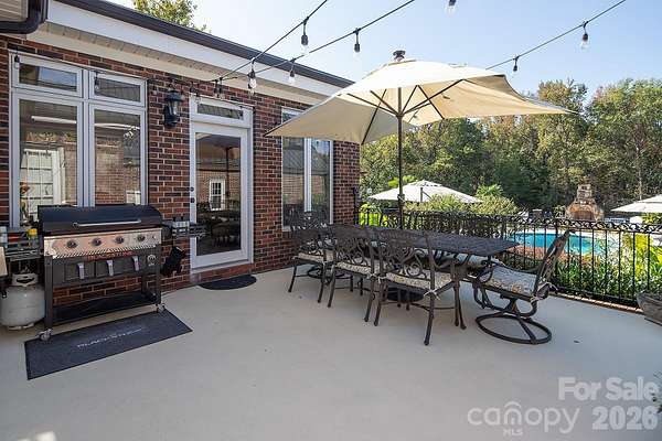 Set on a 5.81acres of beautifully maintained lawn and landscape, this exceptional property offers the perfect blend of privacy, comfort, and high-end upgrades-your own suburban retreat. The full brick exterior delivers timeless curb appeal and low maintenance, complemented by major improvements including a commercial-grade 50-year metal roof, new HVAC systems and ductwork, tankless water heater, upgraded windows, and a fully encapsulated crawlspace. Inside, an open and inviting floor plan centers around a chef's kitchen, spacious great room, and a light-filled sunroom with custom built-ins-ideal for everyday living and entertaining. The primary suite is a true escape, featuring a spa-like bath and a generous walk-in closet with custom shelving. Step outside to a private backyard oasis complete with a 20,000-gallon saltwater pool, Coolcrete decking, outdoor fireplace, gas grill, and refrigerator-perfect for relaxing or hosting gatherings. The property is fully fenced and gated, with smart home technology providing added convenience, security, and peace of mind. A versatile 40x80 shop with 220-amp power and a heated/cooled office offers endless possibilities for hobbies, storage, or workspace. With acceptable offer, the seller will consider including pool furniture, umbrellas, planters, zero-turn mower, and various home furnishings, making this a truly turnkey opportunity. Don't miss your chance to own this one-of-a-kind retreat!