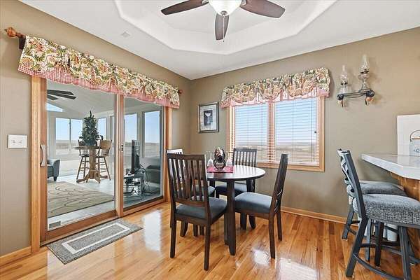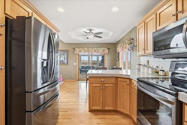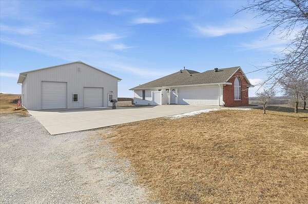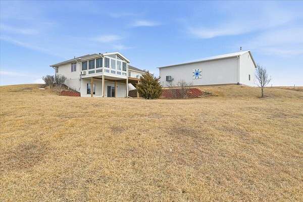 This sprawling ranch home is located on 2 acres just 25 minutes from the downtown area! Featuring a 4 season sunroom with mini-split sys. that allows you to enjoy the spectaular views all year long and wood floors that flow throughout most of the main. The primary suite has a walk-in shower, spacious closet and heated tile floors. And for added convenience, main floor laundry, zero entry from garage and newer stainess steel appliances. The finished basement walks out to a sizeable patio covered by a composite deck, a large non-conforming bedroom or craftroom as well as a kitchette which can serve as separate living quarters. But the real star of the show is the 40 x 50 heated and cooled shop with 12 ft, 9 ft and 7 ft access doors and the back up generator for added security