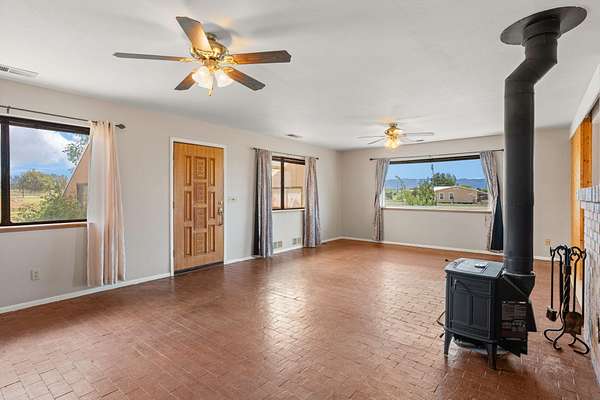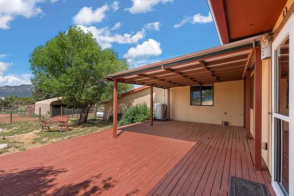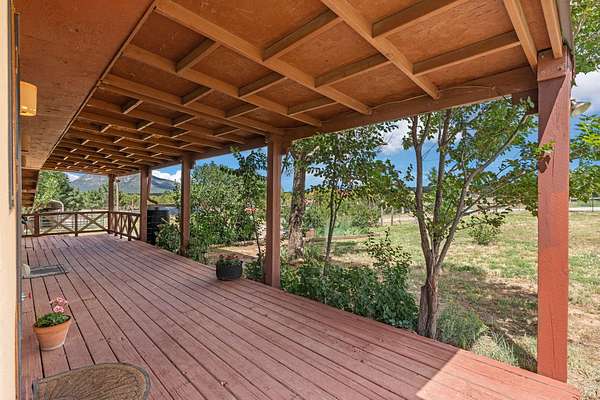Welcome Home to this Gorgeous Horse Property with some of the most Stunning views you will ever see! This 2/3 bedroom, 2 Full bath home has so much to offer! Possible 3rd bedroom, office, shop, home gym, studio has separate entrance. No Carpet! There is new fencing, new gate, new woodstove, new vinyl flooring and newer kitchen appliances! Furnace was new in 2022. 6 rain catch containers for a total of 2,145 gals. Covered front and back porches on this corner lot! Owned solar panels to offset electric costs. Solar is free standing, not on the roof!!! This is a must see home! Schedule today to see this Amazing Mountain Property! This is a great place to call home!