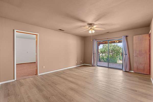 I-40 to Sedillo Hill exit. East on Rt 66 to Mountain Valley Rd. North on Mountain Valley. East on Baugus Ln. Property entrance is on the left just past the curve.