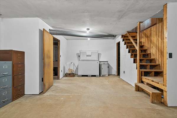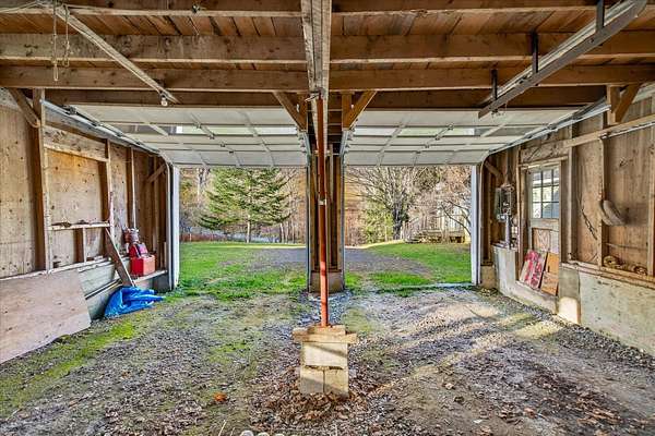 Set on 2.14 private acres surrounded by rolling hills and mature trees, this 3-bedroom, 1-bath home offers comfortable country living less than a mile from Chelsea village. The single-level layout features an eat-in kitchen, a bright living room with a bay window, and a full basement with laundry and storage. The home is built for easy maintenance with vinyl siding and a standing seam metal roof. Stay warm through the winter with both a wood furnace and an oil furnace for flexible heating options. A classic two-level barn provides garage space, a workshop area, or room for hobbies, with additional covered storage along the side. The property's open yard and wooded backdrop create a peaceful setting ideal for gardening, outdoor projects, or simply relaxing. VAST snowmobile trails run right behind the property, offering easy access to miles of Vermont recreation. Located in the charming town of Chelsea, residents enjoy school choice and the option to attend Thetford Academy, one of the state's most respected schools.