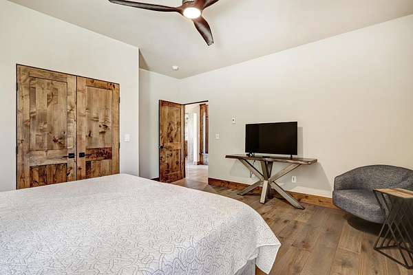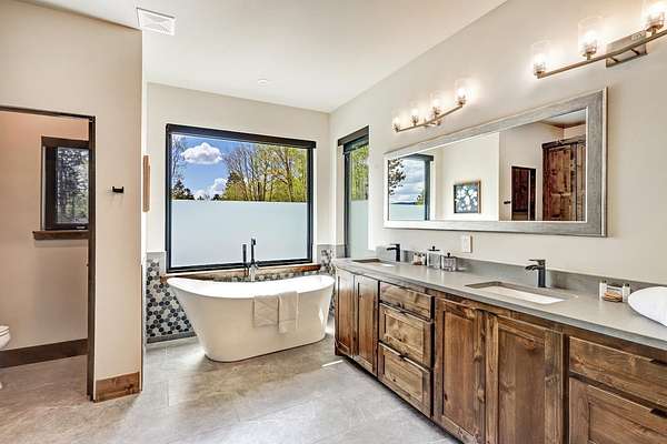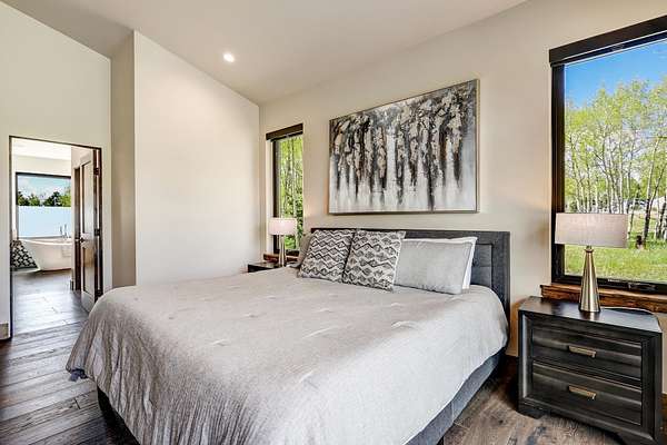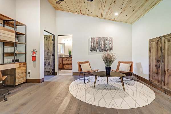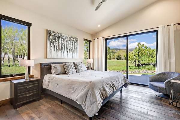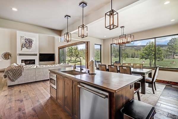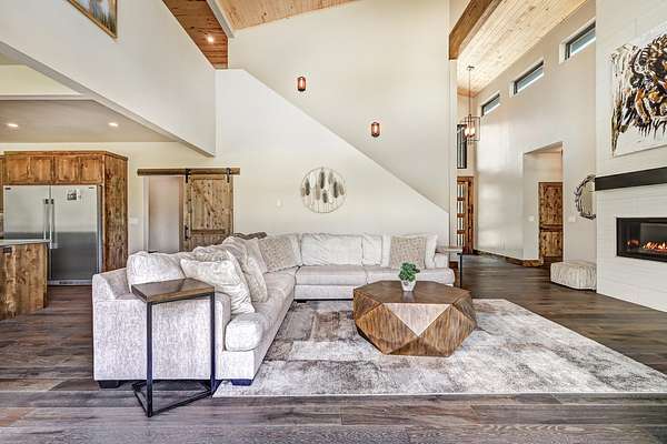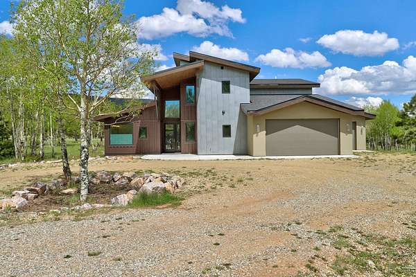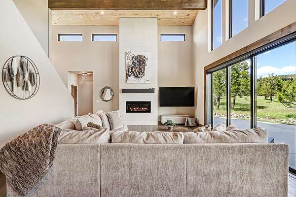 Experience the pinnacle of modern mountain living in this thoughtfully designed retreat, built by Lindsey Custom Builders in 2020. Located in the heart of the Valley of the Utes in Angel Fire NM. This home has 4 spacious bedrooms, 4.5 luxurious bathrooms, and nearly 3,000 square feet of refined living space, 31 Beaver Loop blends rustic charm with contemporary style in a setting that's as peaceful as it is inspiring. Inside, you're welcomed by a warm, open-concept layout with soaring tongue-and-groove ceilings, rich wood beams, and expansive windows that frame the surrounding forest. A striking propane fueled fireplace anchors the living space, while wide-plank wood floors and sleek finishes elevate the home's modern mountain aesthetic. The chef's kitchen features quartz countertops, stainless steel appliances, and ample room for entertaining-perfect for apres-ski evenings or quiet weekends in. Each of the four bedrooms is designed with comfort and privacy in mind, with spa-style bathrooms that offer a tranquil retreat after a day of adventure. Through the stacking sliding glass door, step outside onto a concrete patio to breathe in the crisp alpine air, watch elk pass by while you enjoy the propane fire pit or simply enjoy the peace of your forested surroundings.