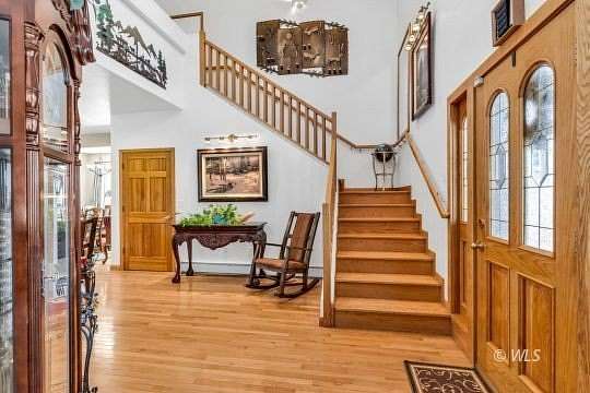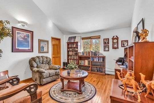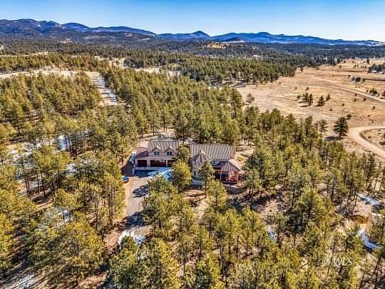 Nestled in the serene beauty of the mountains, this spacious stucco home offers a perfect blend of luxury and natural charm. On 5 wooded acres, this property provides breathtaking Mountain Views that can be enjoyed from multiple vantage points throughout the home. With 3 beautifully appointed bedrooms upstairs and 3 bathrooms, this residence is designed to offer comfort and elegance at every turn. The heart if the home is the gorgeous kitchen with sleek quartz countertops, large island, stainless steel appliances, and walk-in pantry, flowing seamlessly into the dining room. Oak hardwood floors are featured throughout. The media room offers an entertainment center, while the living room showcases mountain views. The upstairs primary suite offers bright windows with views and access to a private deck. A 4-car heated garage includes animal care spaces with covered dog run, wash station & indoor kennels. Above the garage is an additional 800 sq ft living space well suited for a home office or guests. A 20 x 50 RV garage with electric power is also included. Hiking, biking, and hunting await at the nearby State Wildlife Area. Great year round access and adjoining 5 acres also available.