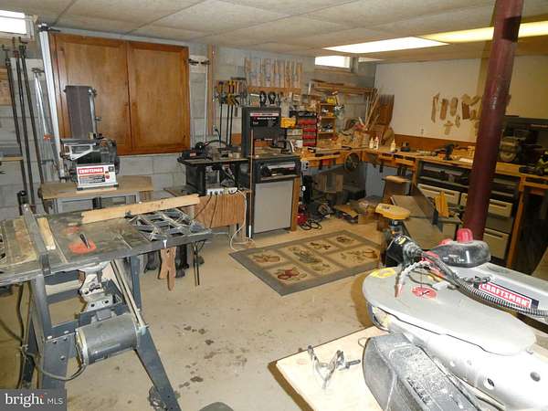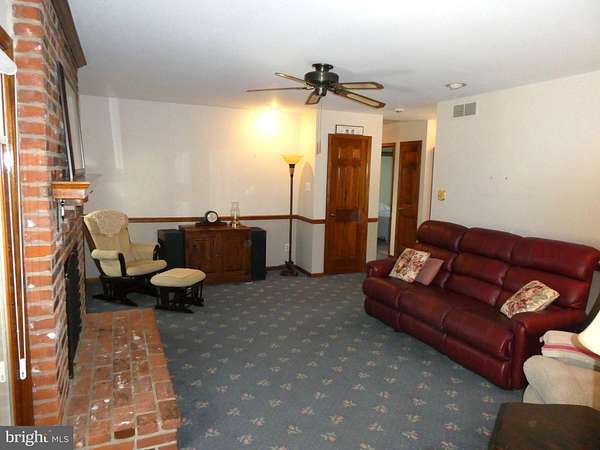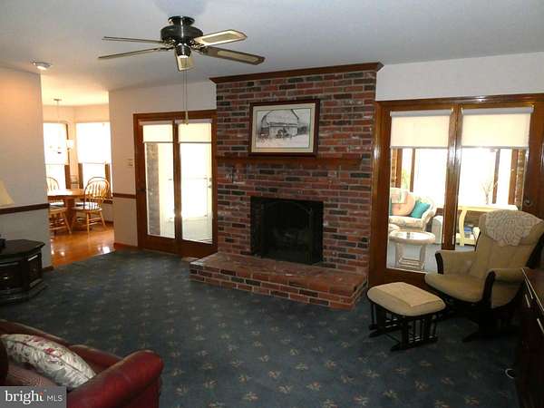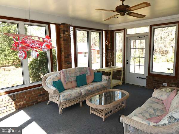 Escape to your own private retreat on 5.5 serene acres with this spectacular custom-built all-brick rancher, thoughtfully constructed by its original owner, a masonry contractor. A welcoming foyer opens to a spacious formal living room and dining room, leading into a large family room featuring a stunning brick fireplace and overlooking an expansive sun porch surrounded by walls of windows, perfect for enjoying the peaceful setting year-round. The generously sized eat-in kitchen offers ample space for preparing your favorite culinary creations. Just beyond are the laundry room, powder room, and a versatile formal office or possible 4th bedroom, along with access to the full basement and attached 2-car garage. Down the hall, you'll find two oversized bedrooms and a private primary suite complete with its own bath. Beautiful hardwood flooring and wall-to-wall carpeting run throughout the home. Additional highlights include a whole-house generator, a high-ceiling full basement with an extensive workshop area, and beautifully landscaped grounds that provide exceptional privacy and tranquility.
