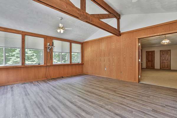 Charming one-story Center Chimney Cape with Expansion Potential on 4.5 Acres in Mont Vernon! Welcome to 31 Cross Road--an open floor plan, 2 bedroom but with a 3 bedroom septic so it's ready to easily expand to the 2nd floor. There are two 3/4 bath Cape nestled on a serene 4.5-acre lot in picturesque Mont Vernon, NH. With 1,560 square feet of finished living space and an additional 600+/- SF on the second floor ready to be transformed into 2 or 3 more bedrooms and a full bath, or MBR with ensuite... use your imagination! Add a flight of stairs and this home offers incredible potential to grow into. Step inside to find a warm and inviting layout featuring carpet and vinyl plank floors, a cozy fireplace, and a spacious kitchen perfect for entertaining. The full basement w/walk-out provides ample storage or workshop space. Outside, an oversized 30' x 34' detached garage with 287+/- SF of unfinished space above offers endless possibilities--think home office, studio, or even an accessory dwelling unit (ADU). The expansive lot provides privacy, room to roam, and the peaceful charm of country living, all just minutes from Amherst and major commuter routes. Whether you're looking for a move-in-ready home or a property with room to grow, 31 Cross Road delivers space, flexibility, and value in one of southern New Hampshire's most desirable communities.