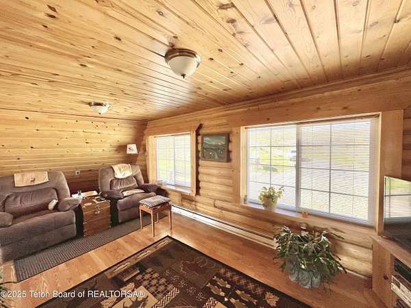 Located just over an hour from Jackson Hole, this 3-bed, 3-bath log cabin on 50 acres is the perfect home, fishing cabin or hunting basecamp! Featuring nearly a 1/2 mile of Horse Creek, this pristine parcel is fenced with multiple pastures, water rights, an open barn and corral for horses and borders public land for endless adventures straight from the property. The home offers a cozy, rustic feel with multiple living spaces, warm wood finishes and abundant natural light, while boasting huge views of three mountain ranges. An attached garage, large detached shop and shed provide cover for all of those Wyoming toys! Bring the ATVs, bring your horses, bring the fly rod! Enjoy fishing on private live water just a short walk from the home. Enjoy regular visits from wildlife. No CCRs!