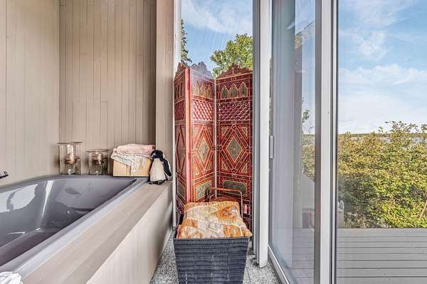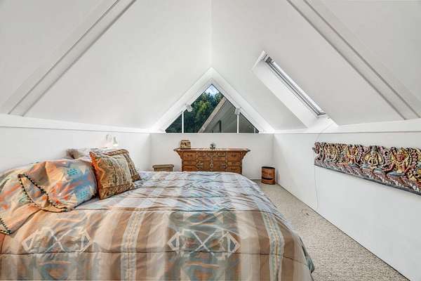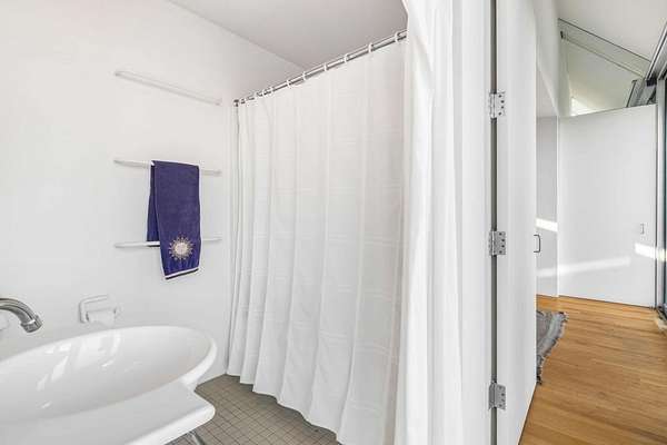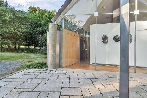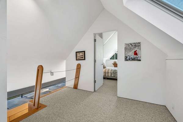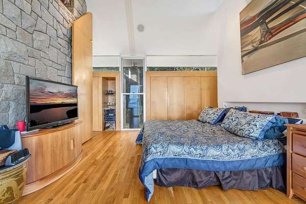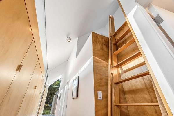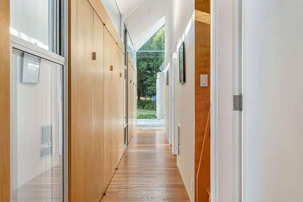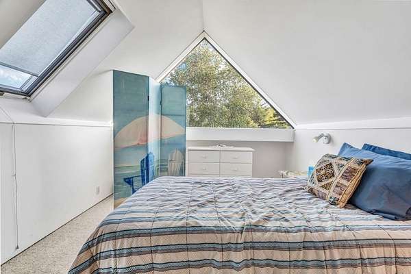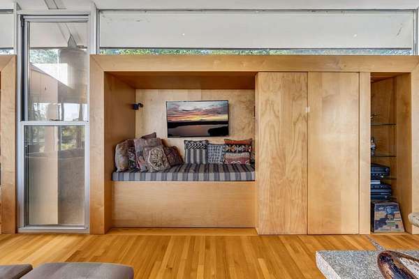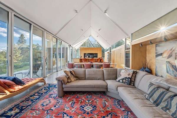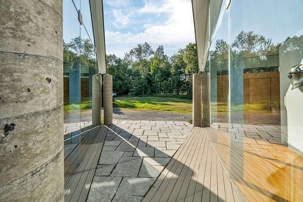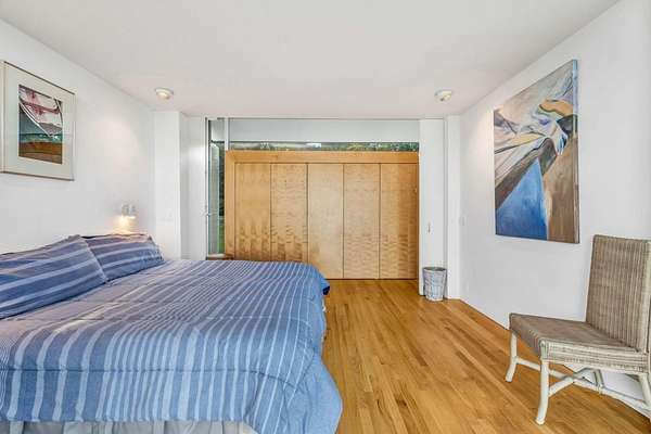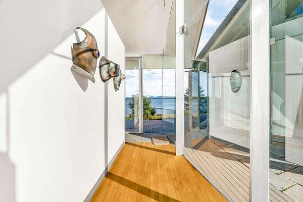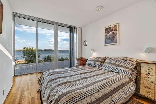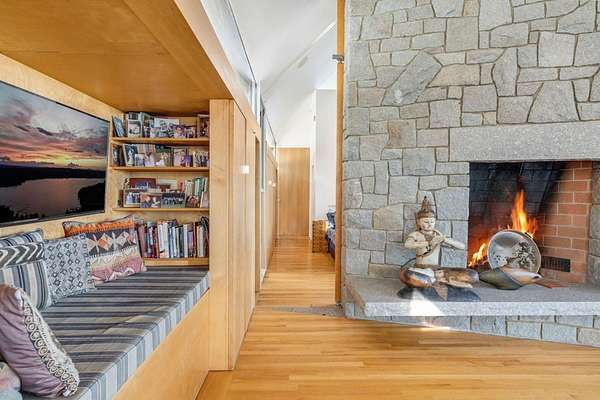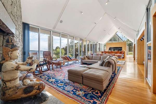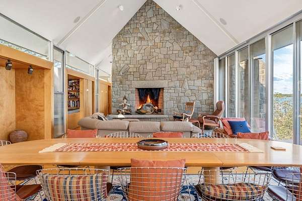 Between the incredible beach setting, the architecture, light filled rooms and style of this Peter Forbes designed masterpiece, you'll enjoy all this property has with plenty of room for your extended family and guests. The purpose in the design was to wrap the beautiful gravel beach shoreline with the curve of the house and to keep it simple with uncluttered spaces with extensive storage space in the unique 'saddlebag' style closets hanging off the back and to be able to display their art along with having an art studio off the north end. With spectacular views of Union River Bay to the mountains of Acadia the home was built on concrete pillars that go all the way to the roofline to support the unique steel and wood structure and the decks even fold up in the winter to become storm shutters for the wall of glass on the water side. The main house is basically one bedroom and the guest house. that is just a few feet apart on the deck, includes another three bedrooms down and two more in the loft. The detached garage has an office and finished shop area that could be more living space or an additional upstairs in that building that is also finished.