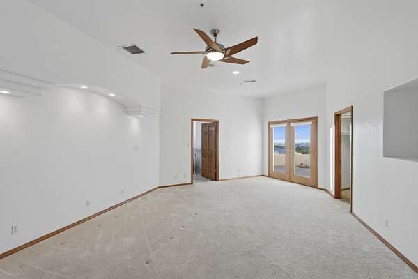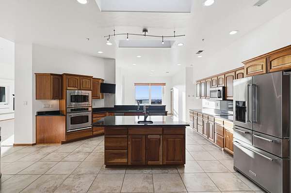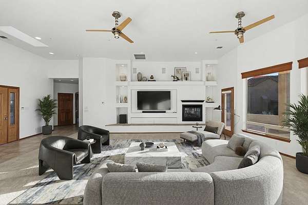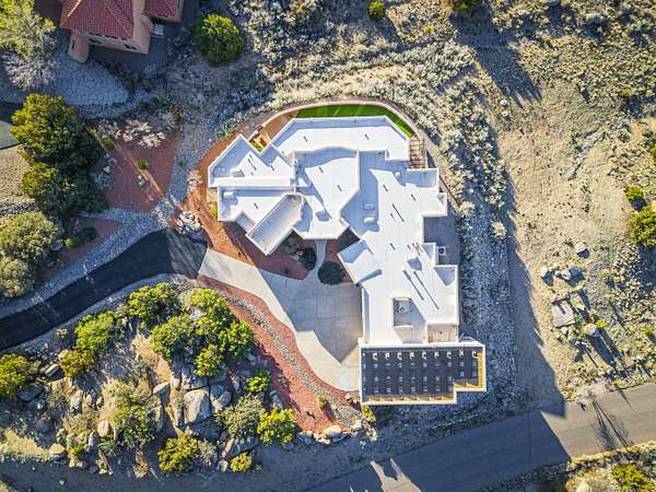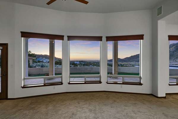 Welcome to your dream home at the edge of the city! This stunning one-story fully custom Hinkle Home boasts energy efficiency and breathtaking views of the mountains and city lights. The spacious great room features a full wiring closet access from primary, built in speakers and oversized windows that flood the space with natural light. You'll love the modern upgrades, including granite countertops, stainless steel appliances, solar and a 4 car garage with a massive RV garage big enough for all the toys, 1 garage is both heated and cooled, perfect for a home gym or man/woman cave or workshop. With seven skylights & MinkaAire ceiling fans & gorgeous backyard patio comfort and convenience are at your fingertips. Perfectly designed for your lifestyle, this home is a must-see luxury dream