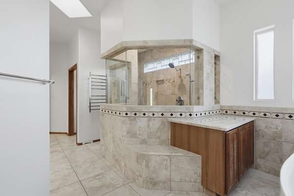 - Bathtub, Bookcases, Breakfast Area, Breakfast Bar, Cable TV, Cathedral Ceilings, Ceiling Fans, Central Vacuum, Great Room, Home Office, Kitchen Island, Main Level Primary, Pantry, Separate Formal Dining Room, Skylights, Soaking Tub, Walk In Closets, Water Closets