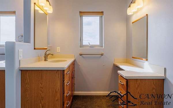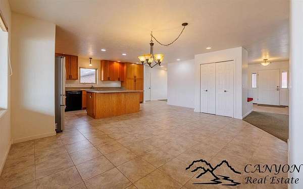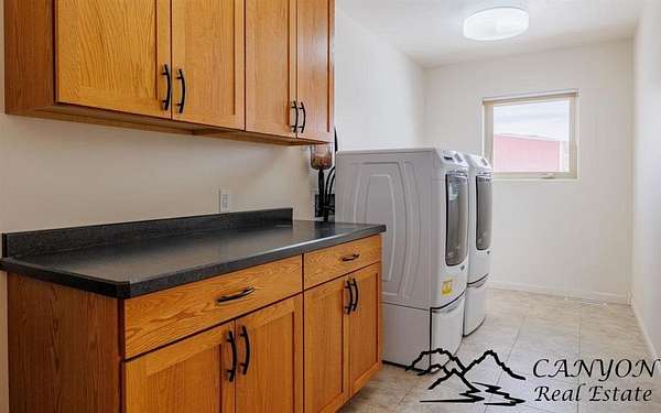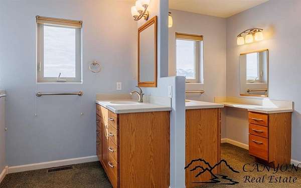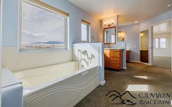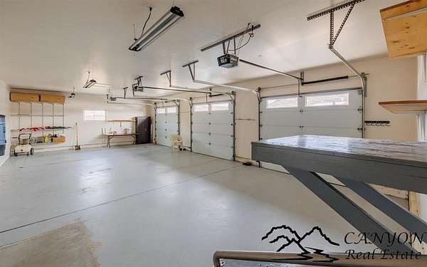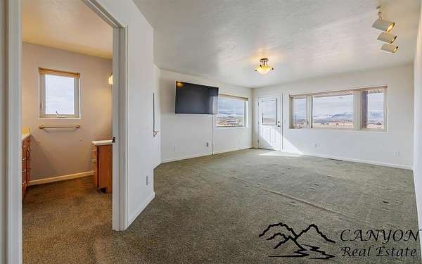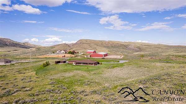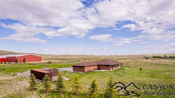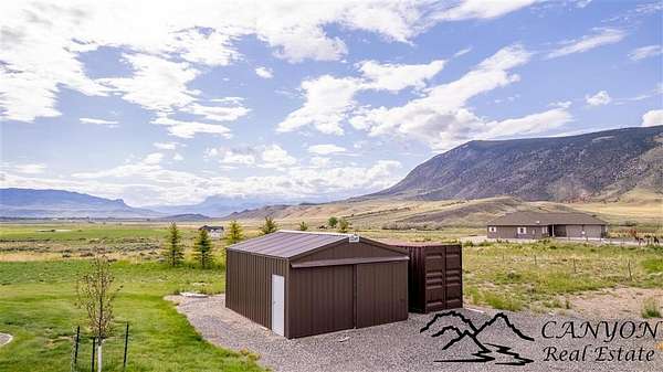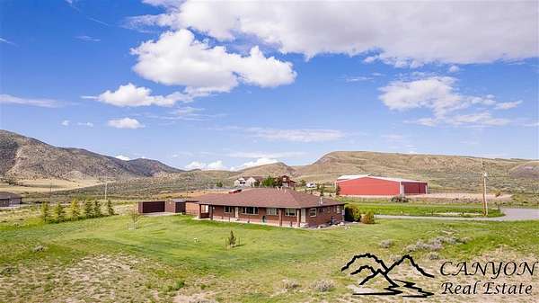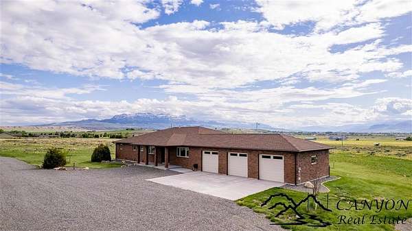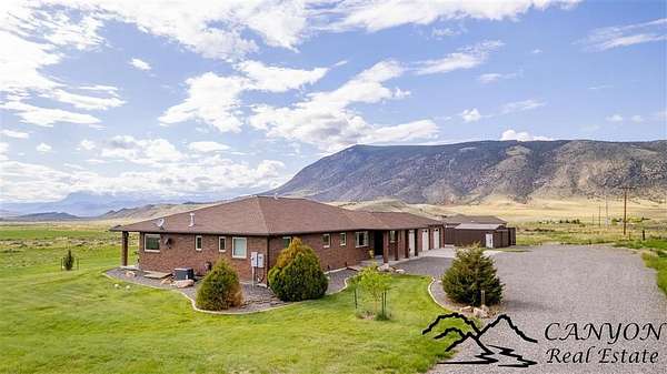 Exceptional value per square foot! This immaculate 5,546 sq ft home offers breathtaking 180-degree views of three mountain ranges and is located in Cody’s desirable Southfork Valley just minutes to downtown Cody. Situated on 6.32 private acres with Northwest Rural Water, this low-maintenance brick home features 5 bedrooms and 3 bathrooms across two levels. Owner financing available. The main level includes wide hallways, a spacious custom kitchen with double ovens, breakfast island, and formal dining area. The great room showcases a propane heating stove and large picture windows capturing the surrounding views. The primary suite features a gas fireplace, dual vanities, soaking tub, walk-in shower, and walk-in closet. Two guest bedrooms, a full bath, and laundry complete the main floor. The finished lower level offers interior and private exterior access, a large bedroom suite, oversized guest bedroom with walk-in closet, living area, recreation room with 8-ft slate pool table, office nook, and ample storage. Additional features include forced air with A/C, on-demand hot water, radon mitigation, a whole house generator, covered front patio, shaded back patio with roll-down blinds, 3-car attached finished garage, RV parking, storage shed, storage container, automatic sprinklers, and nearby BLM access with miles of public lands to explore. With unmatched views, extensive features, and outstanding value per square foot, this property is one you won’t want to miss.
