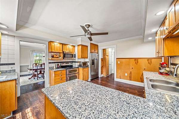 Welcome to this stunning 7-bedroom, 3.5-bath colonial estate situated on a picturesque 2.2-acre lot in sought-after Painesville Township. This expansive home offers timeless charm, abundant space, and unique features that make it truly one of a kind. Inside, you'll find a beautiful library perfect for quiet reading or a home office, as well as a spacious family room/den complete with a built-in bar perfect for entertaining. Large primary bedroom includes a beautiful full remodeled bath with a walk in shower. A screened-in patio offers a peaceful retreat to enjoy the surrounding nature. This property also includes a large detached garage and outbuilding that was once a rental property. It has since been fully gutted, offering a clean slate for your vision whether it's a guest house, studio, workshop, or future income property. With 7 bedrooms, 3.5 bathrooms, and endless potential both inside and out, this rare colonial is a must-see for anyone seeking space, character, and opportunity in a serene setting.