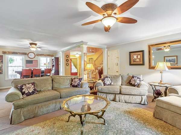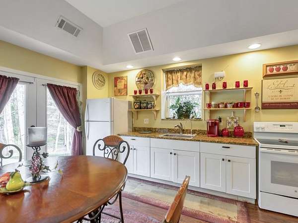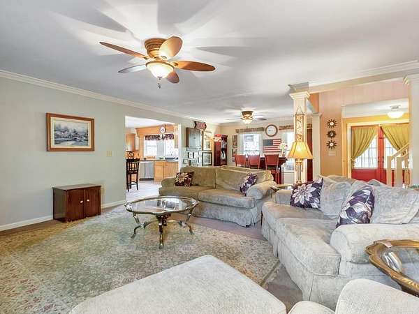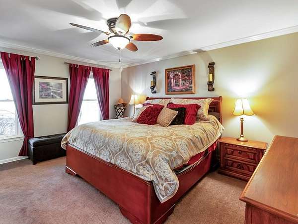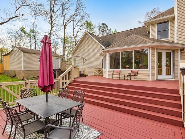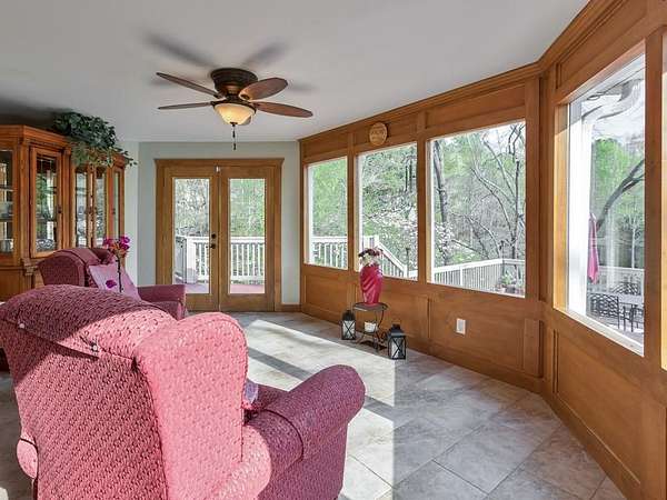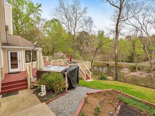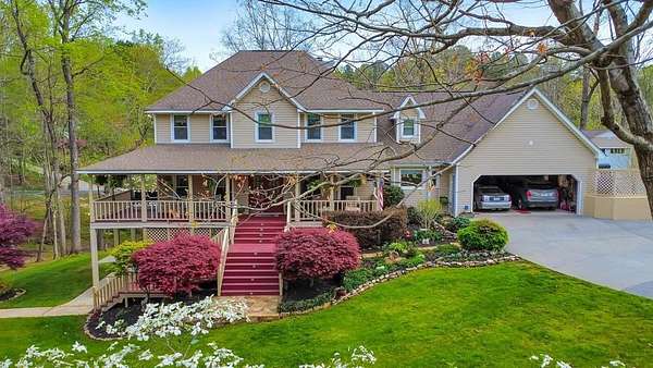Welcome to this beautifully maintained and thoughtfully upgraded 5 bedroom / 5 bathroom waterfront home, perfectly situated on a serene 2.8-acre lot in peaceful White, GA. Offering privacy, breathtaking pond views, and incredible indoor and outdoor living spaces, this property is a rare opportunity to enjoy tranquil living with room to entertain, relax, and unwind. A charming wraparound covered front porch sets the tone, inviting you into the warm and welcoming interior. The cozy fireside family room features a wet bar, creating the perfect space for gatherings. The spacious kitchen is a true standout, complete with abundant cabinetry and counter space, a center island with seating, and a sunny breakfast room. Thoughtful upgrades include pull-out shelving, hidden trash storage, under-sink organizers, and custom cabinetry throughout. Just off the kitchen, the sunroom with bay windows showcases stunning views of the backyard and pond, offering a peaceful place to start or end your day. The main-level primary suite is a private retreat, featuring a walk-in closet and a beautifully updated ensuite bathroom with dual vanities and a soaking tub perfectly positioned to take in the serene landscape. An additional full bathroom is also conveniently located on the main level. Upstairs, you'll find four generously sized secondary bedrooms and two full bathrooms, including one ensuite-ideal for a second primary suite or guest accommodations. The fully finished basement expands your living space with a second kitchen, full bathroom, two versatile flex rooms, and a storm room, making it perfect for an in-law suite, guest quarters, or multi-generational living. Step outside to your own private oasis. The multi-level deck offers several entertaining spaces, including a hot tub, all overlooking the picturesque pond. Enjoy peaceful afternoons in the gazebo or relax on the patio surrounded by nature. A private dock provides the perfect spot for fishing or simply enjoying the water. Additional features include an attached 2-car garage, a detached garage with a tool shed and overhead storage, and multiple exterior storage areas-including space beneath the front porch. A tankless water heater adds modern efficiency. With unmatched privacy-where only neighbors travel the quiet circle-and the sale including both 31 and 19 Fawn Lake Trail for a combined 2.8 acres, this exceptional property offers the perfect blend of space, comfort, and natural beauty.