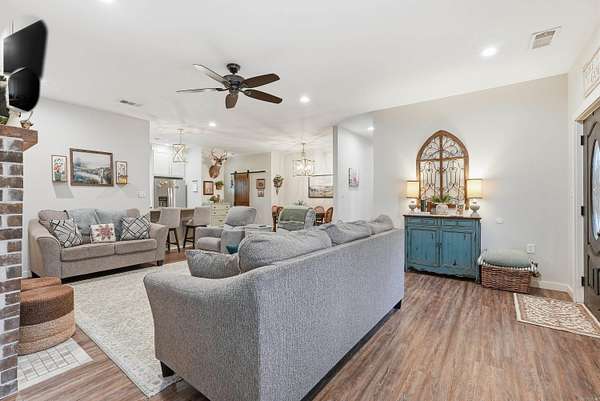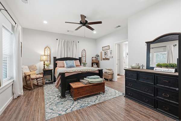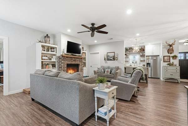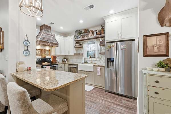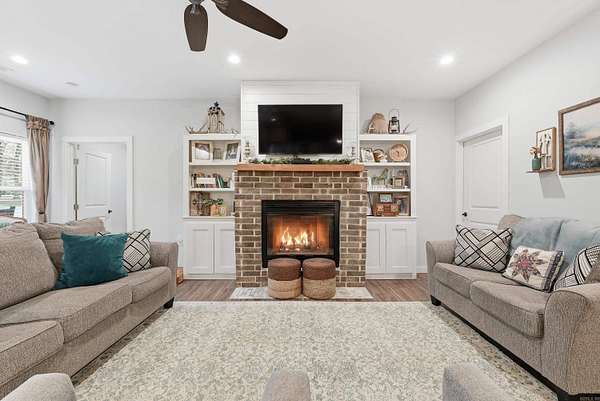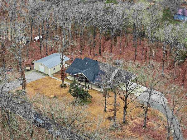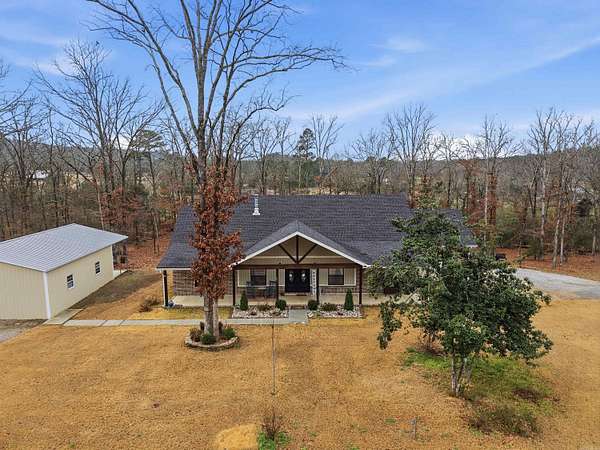 Welcome Home to Peaceful Country Living. Nestled on a quiet street surrounded by nature & mature trees, 31 Griffin Ln Houston, AR is the kind of place that feels like home the moment you pull in the drive. Built in 2022, this beautiful 3bed, 2 bath home with a flexible office space offers 1,920sqft of thoughtfully designed living space on approx 6 serene acres, about 25 miles from Conway. Step inside to an open-concept featuring luxury vinyl flooring throughout and a cozy wood-burning fireplace. The farmhouse-style kitchen is truly the heart of the home with a farmhouse sink, granite countertops, bar seating, gold hardware, and a rustic wood vent hood reclaimed from an old barn, giving this home stories to tell from the start. A spacious pantry keeps small appliances tucked away and countertops clutter free. The primary suite is extra spacious, complete with a large walk-in closet and a spa-like bath featuring a soaker tub and a beautiful walk-in shower. Enjoy peaceful mornings or quiet afternoons on the covered front and back porches, soaking in the sights and sounds of nature all around you. Need extra space? Property includes 30x300 enclosed shop w/ 10x30 lean-to.