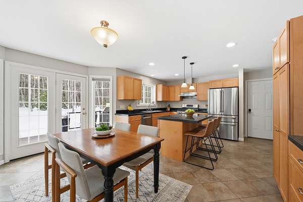 Don't miss this exceptional colonial set on 4.6 private acres in a charming, well-established neighborhood. Enjoy the perfect balance of privacy and convenienceaEUR"just minutes to Topsham Fair Mall and I-295, 10 minutes to downtown Brunswick, and only 35 minutes to Portland. Move-in ready and meticulously maintained, this home offers thoughtful upgrades throughout, including a whole-house automatic generator, gas cooking, in-floor radiant heat on all three levels, a new pellet stove, central vacuum, and convenient second-floor laundry. The impressive foyer welcomes you with soaring ceilings and abundant natural light. Two generous front rooms provide flexible living options, ideal for formal dining or living spaces, a home office, playroom, or first-floor bedroom. The sun-filled kitchen, dining, and living area features an open-concept layout with seamless access to the backyard and direct entry to the oversized garageaEUR"perfect for everyday living and entertaining. Upstairs, the spacious primary suite includes a large walk-in closet, while three additional bedrooms and a guest bath with laundry complete the second floor. Looking for even more space? The basement family room is already in place and ready for your finishing touches. Outdoor enthusiasts will appreciate walking trails in the backyard that connect to abutting conservation land and the Bradley Pond Preserve, offering endless opportunities for exploration. Relax on the new deck, gather around the stone patio and fire pit, or enjoy watching local wildlife. Raised garden beds invite you to grow your own vegetables, and mature trees are ready to be tapped for your very own maple syrupaEUR"a true Maine lifestyle bonus. Showings start Friday, February 6th. Open House Saturday, February 7th.