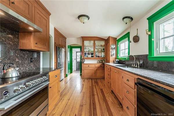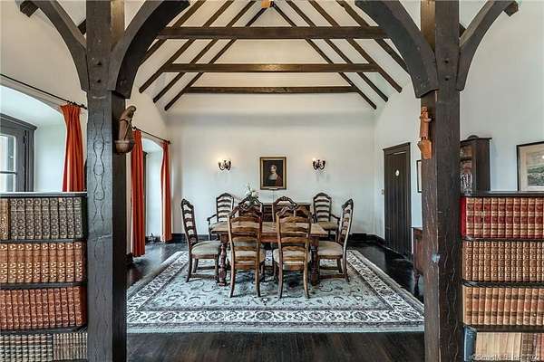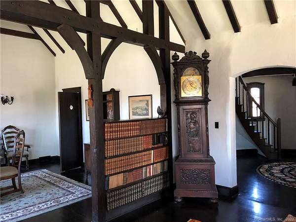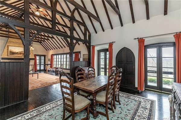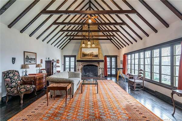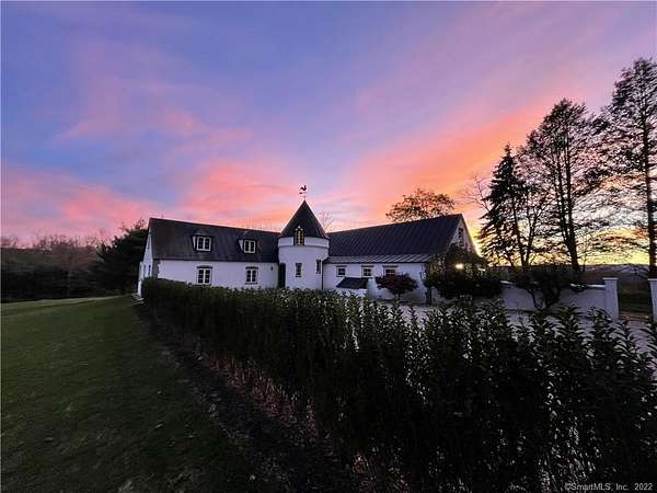 French Country Storybook Estate ~ a rare opportunity to reside in one of Sharon's most distinguished estates blending old world charm with modern comforts. Shrouded in privacy in the heart of town, a sweeping private drive leads to a magnificent pea stone courtyard, serving as a stately prelude to a home framed by rolling fields and manicured lawns with breathtaking western views over the historic Sharon Green. Inside, the home boasts a voluminous family wing with soaring cathedral ceilings, great stone fireplace, and rustic beams; a recently updated galley kitchen that opens into a formal dining room; and a refined layout featuring 3 main-level bedrooms and 3 full baths, plus a secluded study. Ascend the central circular staircase to find a private lofted sanctuary also with a full bath. The exterior invites you to savor the seasons-whether enjoying an alfresco breakfast on the terrace or enjoying the sunset on the western patio. A pleasant stroll to the Hotchkiss Library, coffee shop, food store and other local shops. ANNUAL or ACADEMIC: $6,000/mo. Also available for the SUMMER: June/July/August at $12,000/mo.