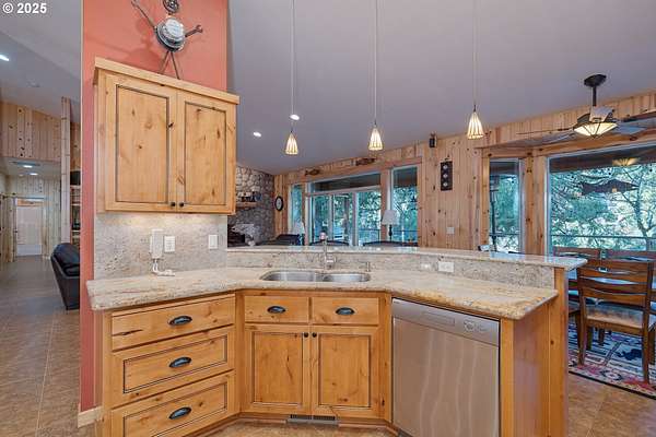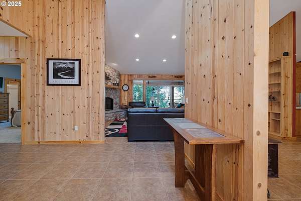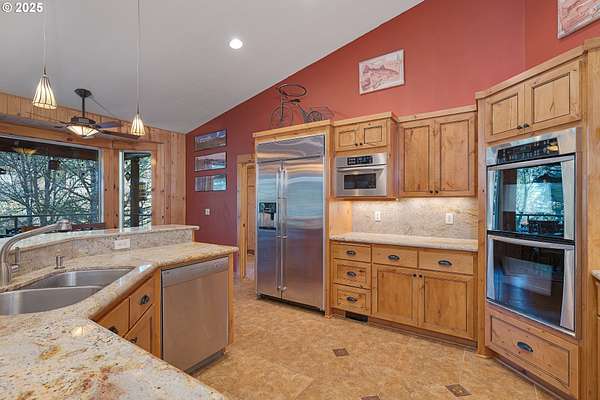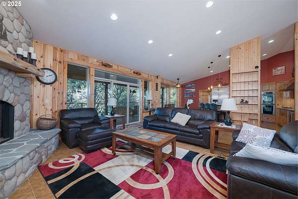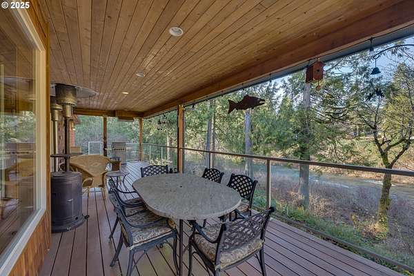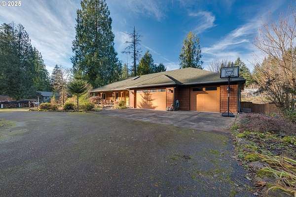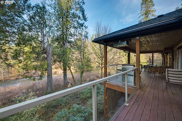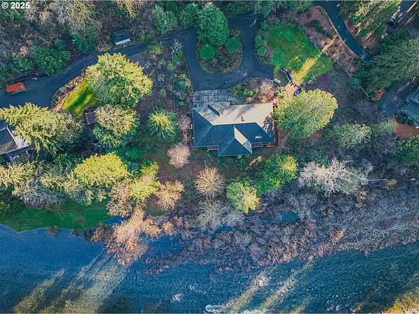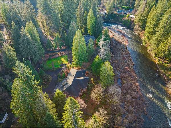 One-of-a-kind custom home on the Washougal River! Enjoy your own wooded oasis on over 2 acres with tranquil riverfront views and exceptional privacy. Inside, the home features beautiful knotty pine finishes repurposed directly from the property. The vaulted living room offers a warm retreat with an oversized propane fireplace and access to the full-length wraparound deck.The vaulted primary bedroom includes skylights and opens directly to the deck, allowing you to step outside to take in the river views and re-enter through the living room or utility room. The kitchen features granite counters, built-in oven and cooktop, and a brand-new built-in refrigerator.A large circular driveway leads to a 3-car garage, including a separate 3rd bay/workshop. Flexible spaces include a 3rd bedroom that can function as a bedroom or office, plus an additional utility/office room for extra versatility. Outside, enjoy a spacious yard with a large fire pit and room for expansion, plus ample parking for vehicles or an RV.This property offers the perfect blend of seclusion and convenience-country living just minutes from town and steps from the general store. Impeccably maintained shared well, septic system, and no HOA. Whether as a peaceful primary residence or an unforgettable vacation home, this riverfront retreat is truly unique.
