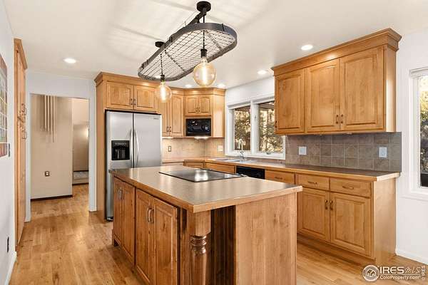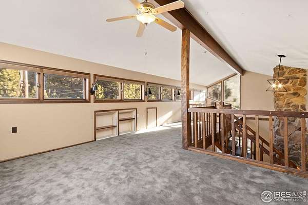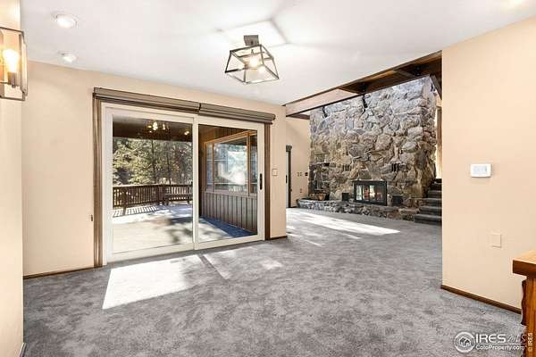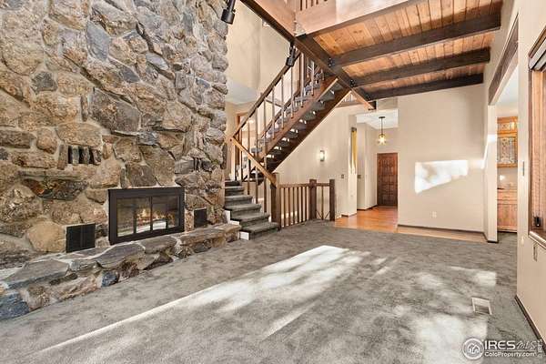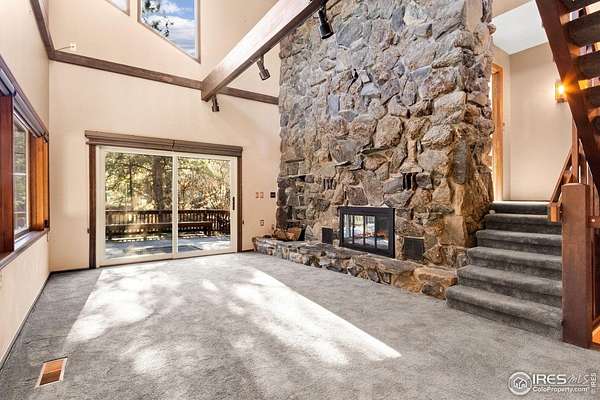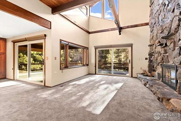 Over 7 acres of mountain living where peace and scenery take center stage! Set against Colorado's natural beauty, this expansive property offers rolling land and forested surroundings where the only sounds you'll hear are the rustling wind through the pines and the gentle presence of local wildlife. Located just 17 miles from Old Town, this home sits just across from the Cache La Poudre River and also features a seasonal stream from Boyd Gulch Creek. Inside, the spacious floor plan showcases elegant design details, soaring ceilings, and exposed wood beams that add a timeless mountain-lodge feel throughout the home. Numerous upgrades have been completed over the years, including new carpeting, refinished wood floors, upscale blinds, updated sliding glass doors, and more. The living area is centered around a floor-to-ceiling stone fireplace with a unique water feature, creating a striking focal point that's visually stunning. The kitchen features modern appliances, a generous island with ample prep space, and pullout cabinets, allowing for everyday ease and effortless hosting. A charming breakfast nook with a classic wood stove offers the perfect spot to start the day, while a separate dining area provides space for more formal gatherings. Two bedroom suites offer comfort and flexibility. Each room includes its own ensuite bath, with the primary standing out thanks to a spacious 5-piece bath and direct access to the stone patio just outside. A sun-filled loft overlooks the main living space and provides flexible possibilities, plus a bonus room that works well for storage. Downstairs, the basement features a recreational area with a brick fireplace, plus a 3rd bedroom that adds flexibility to the overall layout. An expansive wraparound deck invites you to enjoy sweeping views of your acreage, whether it's for quiet mornings, sunset evenings, or stargazing nights. The attached two-car garage includes a built-in workbench, ideal for projects. No HOA!