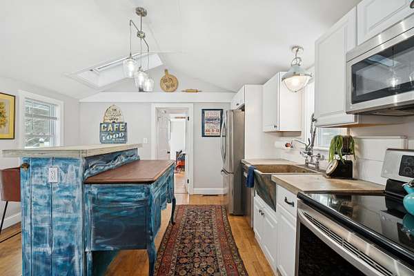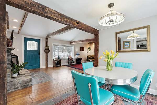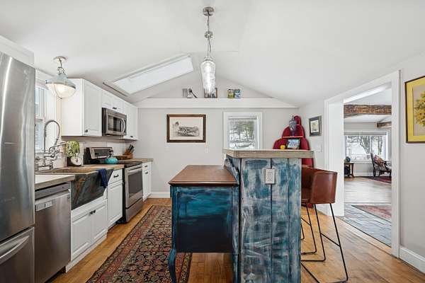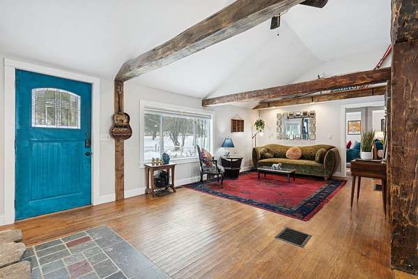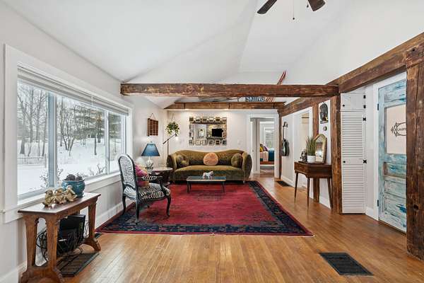 Once home to the renowned New England ski trail designer and craftsman, Robert L. Pearsons, this fully renovated 3 bedroom, 2 bathroom gem is located midway between the villages of Woodstock and Barnard with less than a 10 minute drive to each. The home is situated on 2 level acres of land with the Gulf stream (aka Lakota Brook) running along the edge, providing a magical spot for cooling off in the warmer months, and a tranquil soundtrack for time spent on the new oversized deck. The floor plan is wonderfully functional and the home boasts vaulted ceilings in several of the rooms. The primary bedroom ensuite includes french doors to the deck, a full bath and large closet. The eat-in kitchen is spacious and fully equipped with newer stainless-steel appliances, an island, and skylights. The dining area also has direct access to the deck and flows nicely into the living room where you can curl up with a good book and relax by the wood-burning fireplace. An additional two bedrooms, full bath and laundry round out the remaining spaces. Natural light fills each and every room in this serene and comfortable home. There are two outbuildings, one of which is currently set-up as a "she-shed" and sits just above the brook. Don't miss out on this amazing opportunity to live in one of the Upper Valley's most special places. Barnard Academy is a top-rated elementary school which transitions to the also top-rated Woodstock Middle and High schools. Less than 10 minutes to both the Saskadena Six ski area and Silver Lake, and Killington is also an easy drive. Less than 30 minutes from the Dartmouth Health Center. 2-1/2 hours from Boston. Public Open House this Saturday, 1/31 from 11 AM - 1 PM.