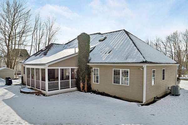 Nestled in the desirable Deerhill Estates neighborhood, 31 Longmeadow Drive offers refined living in a tranquil, private setting. This thoughtfully maintained home features a spacious screened porch--perfect for extended three-season enjoyment--a cozy wood-burning fireplace, and an energy-efficient Bosch heat pump system for modern comfort. The distinctive floor plan includes a secluded bedroom wing with two bedrooms and a full bath, ideal for a home office, guest quarters, or multi-generational living. Elegant first-floor primary suite with spa-inspired bath and refined finishes. An expansive unfinished basement with a separate entrance provides excellent potential for future finished space, a studio, or in-law accommodations. Set on a wooded lot with a flat, usable backyard and exceptional privacy, the home is conveniently located less than five minutes from Route 101, close to local walking trails, and just ten minutes from the Exeter Amtrak station. Located in Brentwood's highly regarded SAU 16 school district, this property offers the perfect blend of serenity, flexibility, and accessibility. Delayed showings until the Open House, Saturday 1/17 from 12-2 and Sunday 1/18 from 12-2.