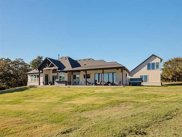 Stunning Lakefront Oasis on Over 2 Acres in Gated Community.Nestled in the heart of a gated community,this lakefront property redefines luxury living. Situated on over 2 sprawling acres,this fully furnished home boasts awe-inspiring lake views and offers an exquisite blend of comfort and opulence.Prime Lakefront Location:This property is a waterfront paradise, offering direct access to the tranquil lake, perfect for water sports and leisurely boat rides.Resort-Style Amenities: Residents enjoy access to a range of resort-style amenities,including a sparkling pool, scenic walking trails, and a well-maintained pickleball court.Adequate Accommodation: With 2 king beds, 4 queen beds, and an additional 6 bunk beds in a separate bunk house equipped with a kitchenette, this home accommodates family and friends with ease.Modern Appliances: The main house features top-of-the-line commercial appliances, while a supplementary refrigerator in the pantry near the outdoor kitchen ensures that every culinary need is met.Convenience at Your Fingertips: Two stackable washer and dryer units simplify laundry tasks, and a bonus room with a 20-foot sliding door and two TVs provides a perfect entertainment space.Entertainment Galore: For those who crave entertainment, a hot tub with an integrated TV awaits. Each bedroom features its own TV, & a Sonos sound system permeates every corner of the property. Rest easy with comprehensive security features, including cameras and an alarm system, ensuring peace of mind for you and your loved ones.For water enthusiasts, a boat slip is available for purchase along with the home, making it convenient to explore the lake at your leisure.This meticulously designed turnkey property is the epitome of elegance and comfort, offering an exceptional opportunity for both personal retreat and investment. Experience the perfect blend of natural beauty and modern luxury in this lakefront sanctuary.Don't miss the chance to own this captivating piece of paradise.